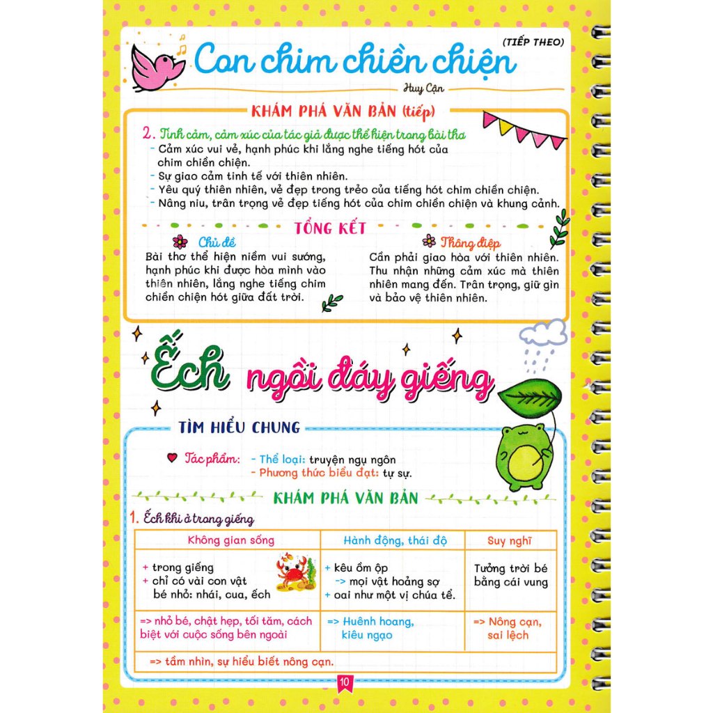 Cuốn sổ tay ngữ văn lớp 7 được thiết kế theo phương pháp Sketchnote với màu sắc và sticker xinh xắn giúp người học dễ đọc, dễ nhớ, tăng hứng thú học tập, học đúng trọng tâm và đạt điểm số cao trong các kì thi.