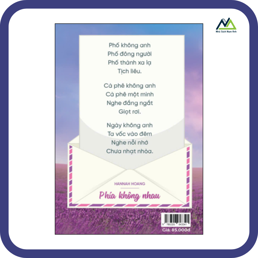 Mua tại Tiktok“Phía Không Nhau” là tập thơ – tản văn chứa đựng những nỗi niềm sâu lắng về tình yêu, sự chia xa và những khoảng trống trong tâm hồn. Với giọng văn tinh tế, mộc mạc mà day dứt, Hannah Hoang đưa người đọc đi qua những mùa nhớ, những tháng ngày cô đơn, xen lẫn kỷ niệm về gia đình, quê hương và tuổi trẻ. Trong từng trang sách, bạn sẽ bắt gặp chính mình – trong một buổi chiều phố cũ, trong một cơn mưa bất chợt, trong khoảng lặng nhớ thương ai đó đã từng rất gần mà giờ đã xa. “Phía Không Nhau” không chỉ là cuốn sách để đọc, mà là một người bạn đồng hành để sẻ chia, để lắng nghe và để chữa lành. Một lựa chọn tuyệt vời cho những ai yêu thơ ca, thích sự chiêm nghiệm nhẹ nhàng nhưng sâu sắc.