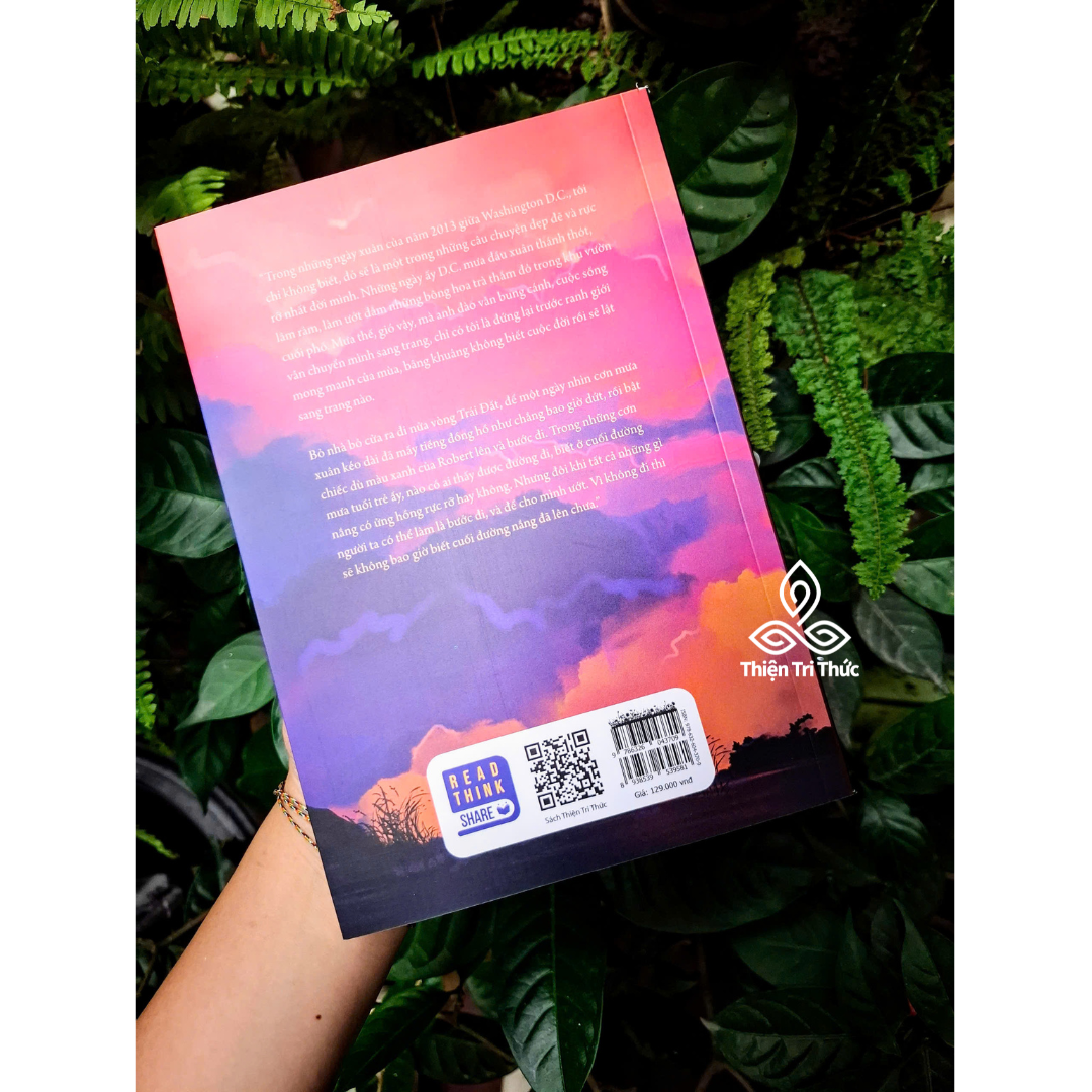 Bỏ nhà bỏ cửa ra đi nửa vòng Trái Đất, để một ngày nhìn cơn mưa xuân kéo dài đã mấy tiếng đồng hồ như chẳng bao giờ dứt, rồi bật chiếc dù màu xanh của Robert lên và bước đi. Trong những cơn mưa tuổi trẻ ấy, nào có ai thấy được đường đi, biết ở cuối đường nắng có ửng hồng rực rỡ hay không. Nhưng đôi khi tất cả những gì người ta có thể làm là bước đi, và để cho mình ướt. Vì không đi thì sẽ không bao giờ biết cuối đường nắng đã lên chưa.”