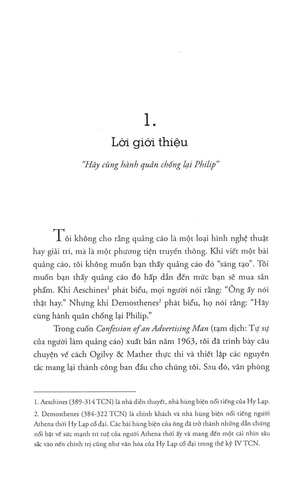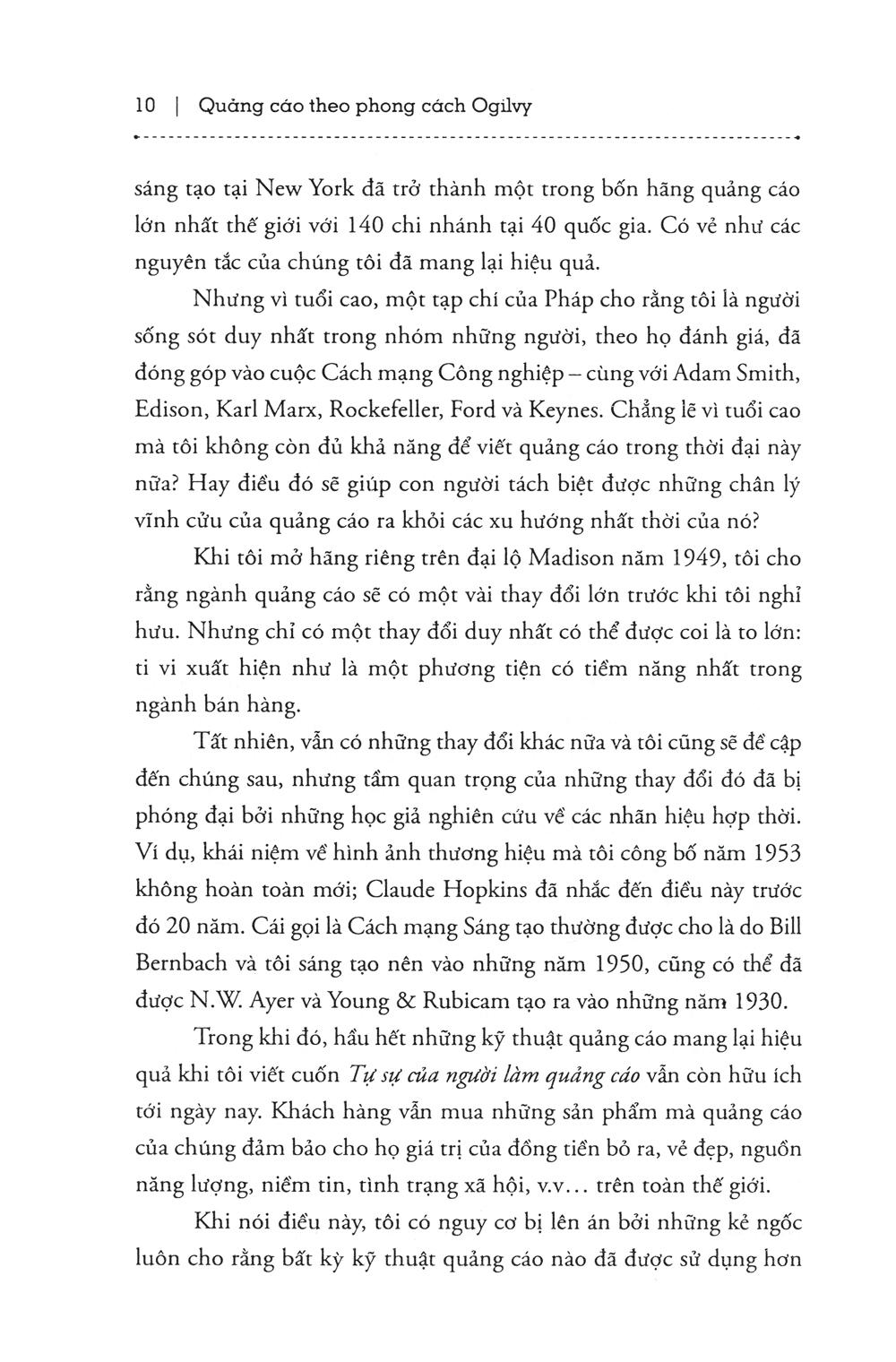 David Ogilvy là một trong những gương mặt nổi bật nhất của ngành quảng cáo, với danh xưng “Cha đẻ của nền quảng cáo hiện đại”. Các cuốn sách ông viết về nghệ thuật quảng cáo đều là những cuốn cẩm nang gối đầu giường của những người trong ngành, từ các vị giáo sư giảng dạy tại đại học đến những người thực sự lăn lộn tiếp xúc với khách hàng thường ngày. Họ gần như thuộc lòng những nguyên tắc và bí quyết của ông, đồng thời coi đó như kim chỉ nam trong nghề của m.ình.