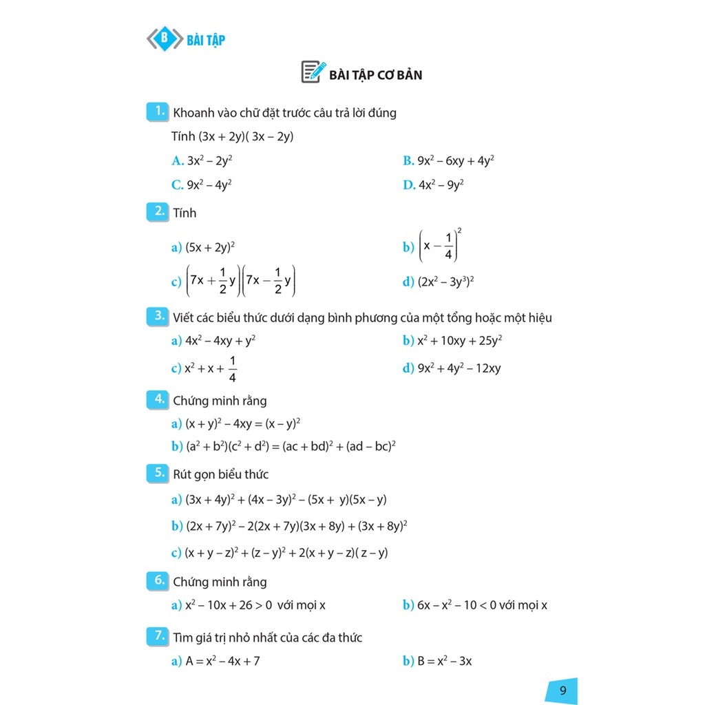 I. Bài tập cơ bản: Kiểm tra, đánh giá mức độ kiến thức và kĩ năng cơ bản, rèn kĩ năng giải toán.