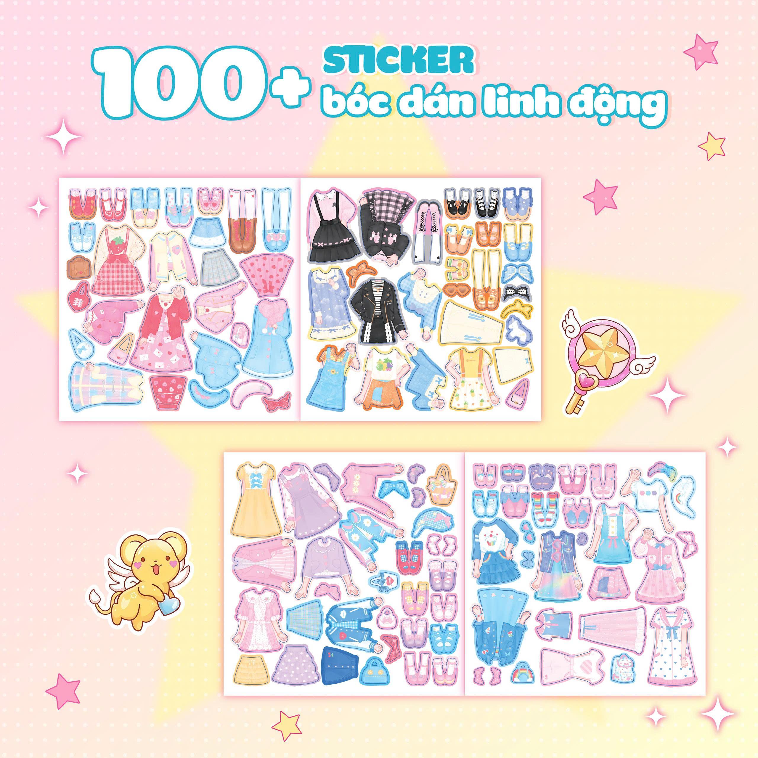 - 100+ Sticker đa dạng – sáng tạo không giới hạn Váy áo, phụ kiện và chi tiết dễ thương giúp bé thoải mái phối đồ theo ý thích. Mỗi cuốn có 10 công chúa Anime với phong cách riêng, cho bé nhiều trải nghiệm mới lạ.
