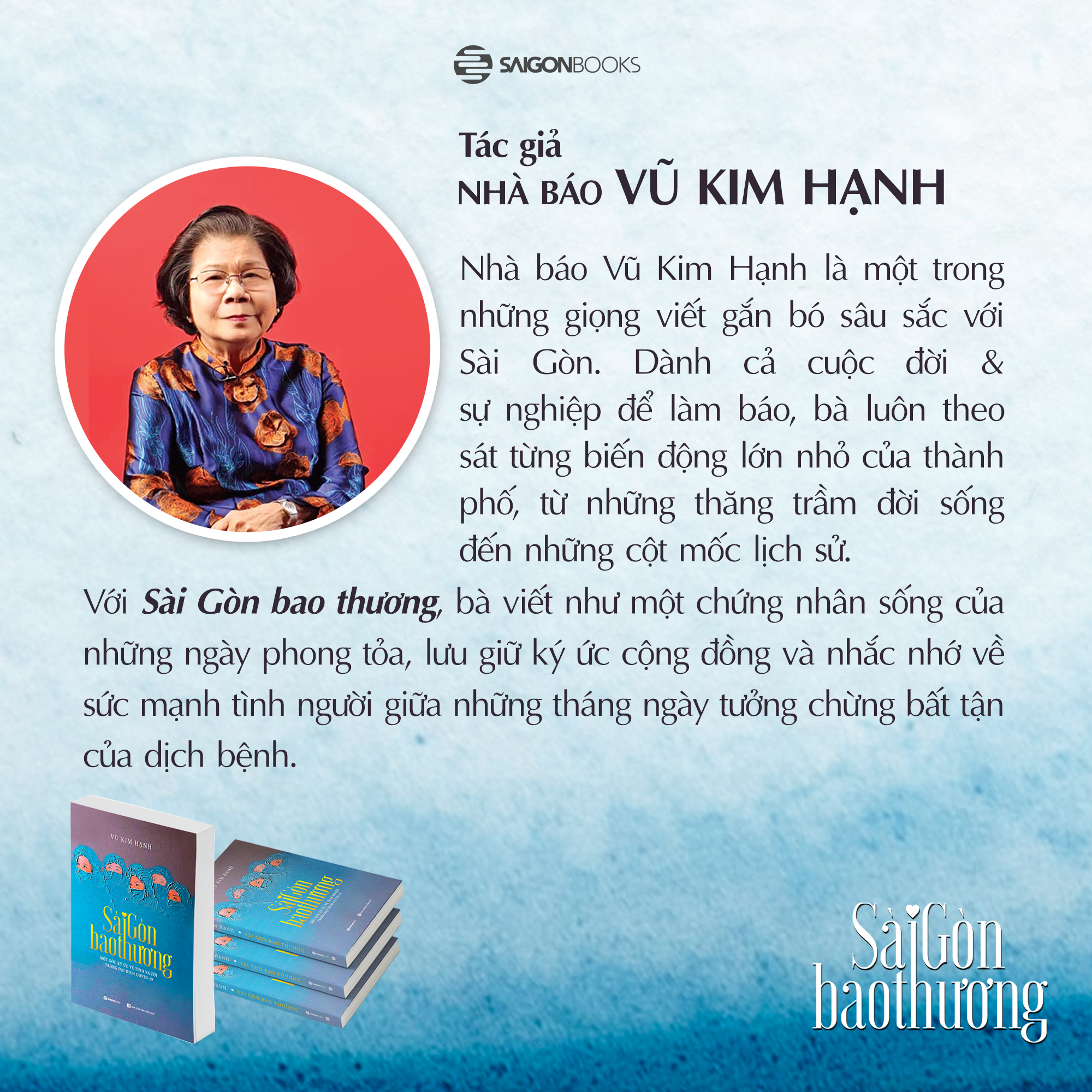 Với Sài Gòn bao thương, nhà báo Vũ Kim Hạnh không chỉ viết lại một giai đoạn đặc biệt, mà còn gửi đến người đọc một thông điệp sâu xa: hãy nhớ cho đúng, hãy thương cho trọn, để từ ký ức ấy mà sống tử tế và nhân ái hơn giữa lòng thành phố hôm nay.