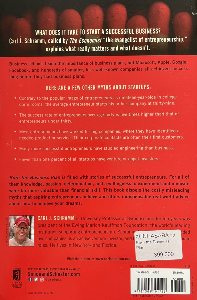 Các trường kinh doanh dạy rằng điều kiện tiên quyết quan trọng nhất để bắt đầu kinh doanh là một kế hoạch kinh doanh. Carl Schramm trong Burn the Business Plan, người đã đứng đầu một thập kỷ đứng đầu nền tảng quan trọng nhất dành cho tinh thần kinh doanh ở đất nước này là vô nghĩa.