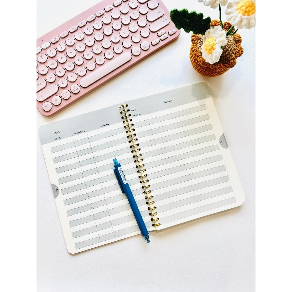 Sổ tay học từ vựng gáy lò xo được sử dụng với mục đích ghi chú, dễ dàng gấp, mang đi, học từ mới một cách hiệu quả cho học sinh, người đi làm.