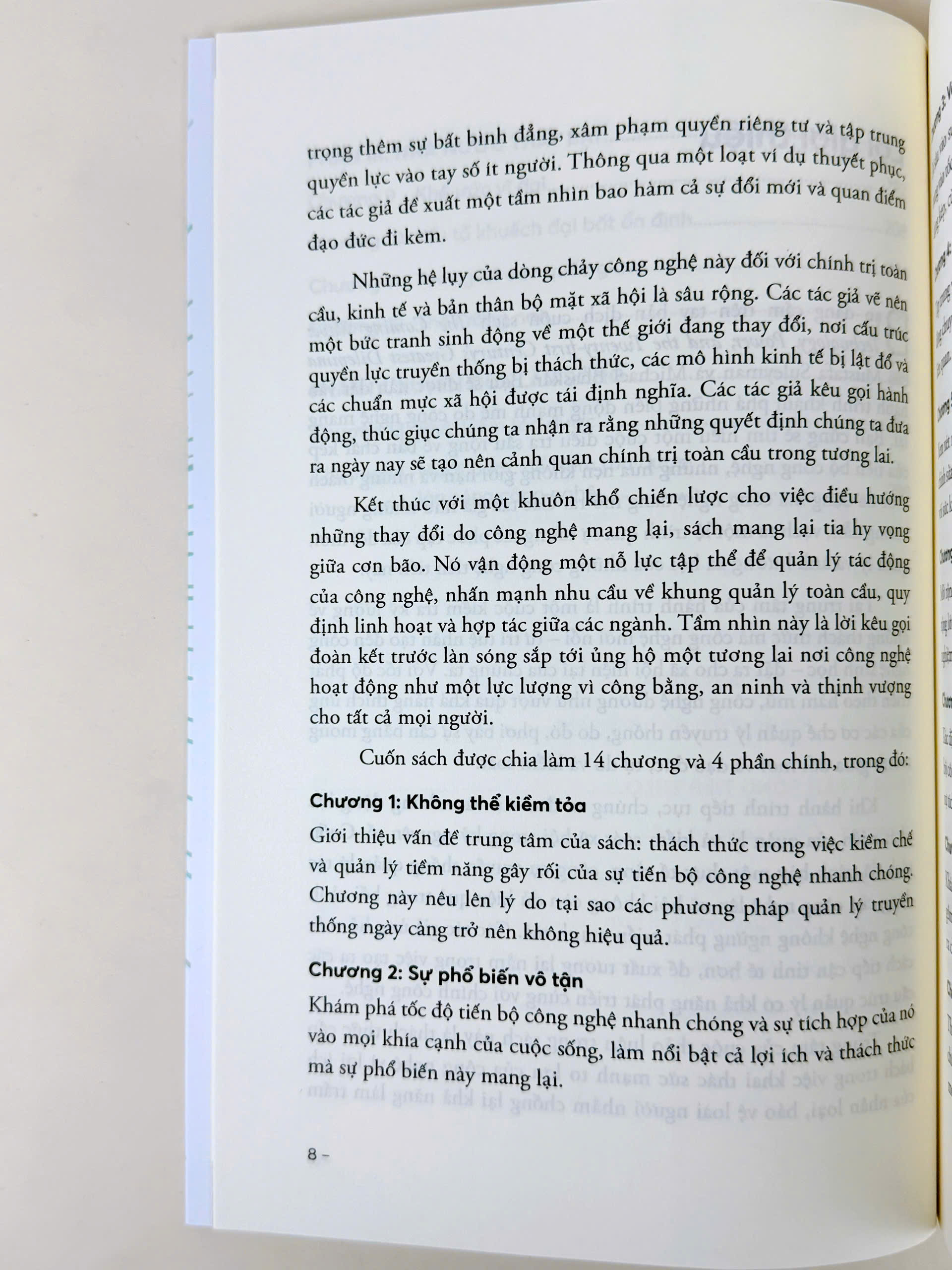 Cuốn sách như lời cảnh báo khẩn cấp từ người đồng sáng lập công ty trí tuệ nhân tạo tiên phong DeepMind, một phần của Gg, Mustafa Suleyman, về những rủi ro chưa từng có mà AI và các công nghệ phát triển nhanh khác gây ra cho trật tự toàn cầu và cơ hội chúng ta có thể ngăn chặn chúng.