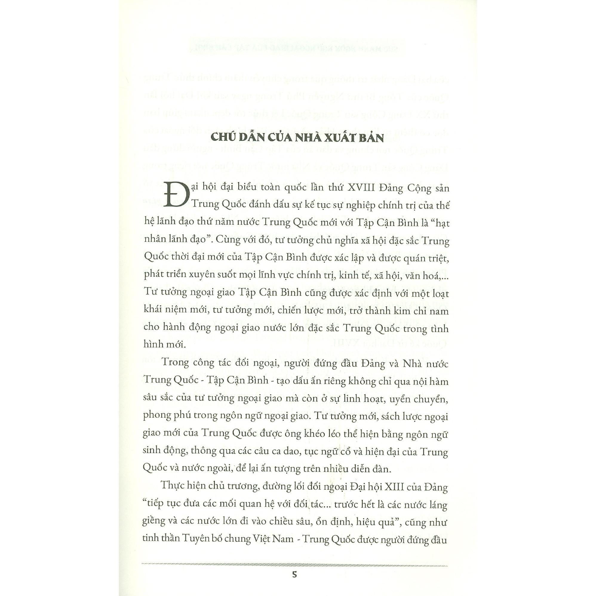 Nhằm giúp bạn đọc có thêm tư liệu tham khảo về đường lối, chính sách đối ngoại của Trung Quốc nói chung và dấu ấn của Tập Cận Bình - người đứng đầu Đảng Cộng sản Trung Quốc và Nhà nước Trung Quốc nói riêng trong hoạt động ngoại giao, Nhà xuất bản Chính trị quốc gia Sự thật tổ chức biên dịch, xuất bản cuốn sáchSức mạnh ngôn ngữ ngoại giao của Tập Cận Bìnhdo Tô Cách chủ biên, được Nhà xuất bản Đại học Giao thông Thượng Hải xuất bản năm 2018.