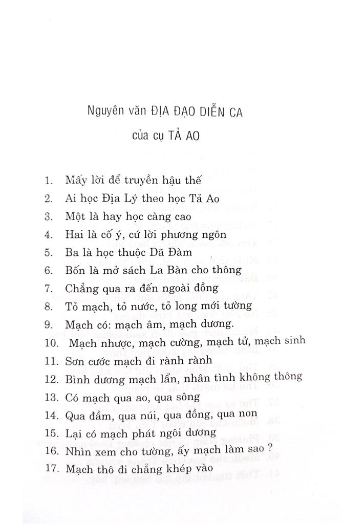 Sách Địa lý Tả Ao được viết từ căn bản đến chi tiết, rất súc tích nhưng dễ học, dễ hiểu. Từ lúc sinh thời, cụ đã được người đời tôn là Thánh Địa lý Tả Ao. Cụ là người Việt Nam đầu tiên đi học khoa Địa lý tận nơi khai sáng khoa này là Trung Hoa và cụ cũng là người Việt Nam đầu tiên viết sách Địa lý còn truyền đến ngày nay.