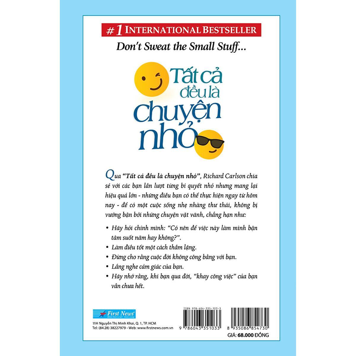 Được khái quát thành 81 đề mục nhỏ với những mẩu chuyện, những lời khuyên, chia sẻ hoặc dẫn chứng về nội dung đang được đề cập, cuốn sách là một cẩm nang sống tuyệt vời. Qua “Tất cả đều là chuyện nhỏ”, Richard Carlson chia sẻ với các bạn lần lượt từng bí quyết nhỏ nhưng mang lại hiệu quả lớn - những điều bạn có thể thực hiện ngay từ hôm nay - để có một cuộc sống nhẹ nhàng thư thái, không bị vướng bận bởi những chuyện vặt vãnh.