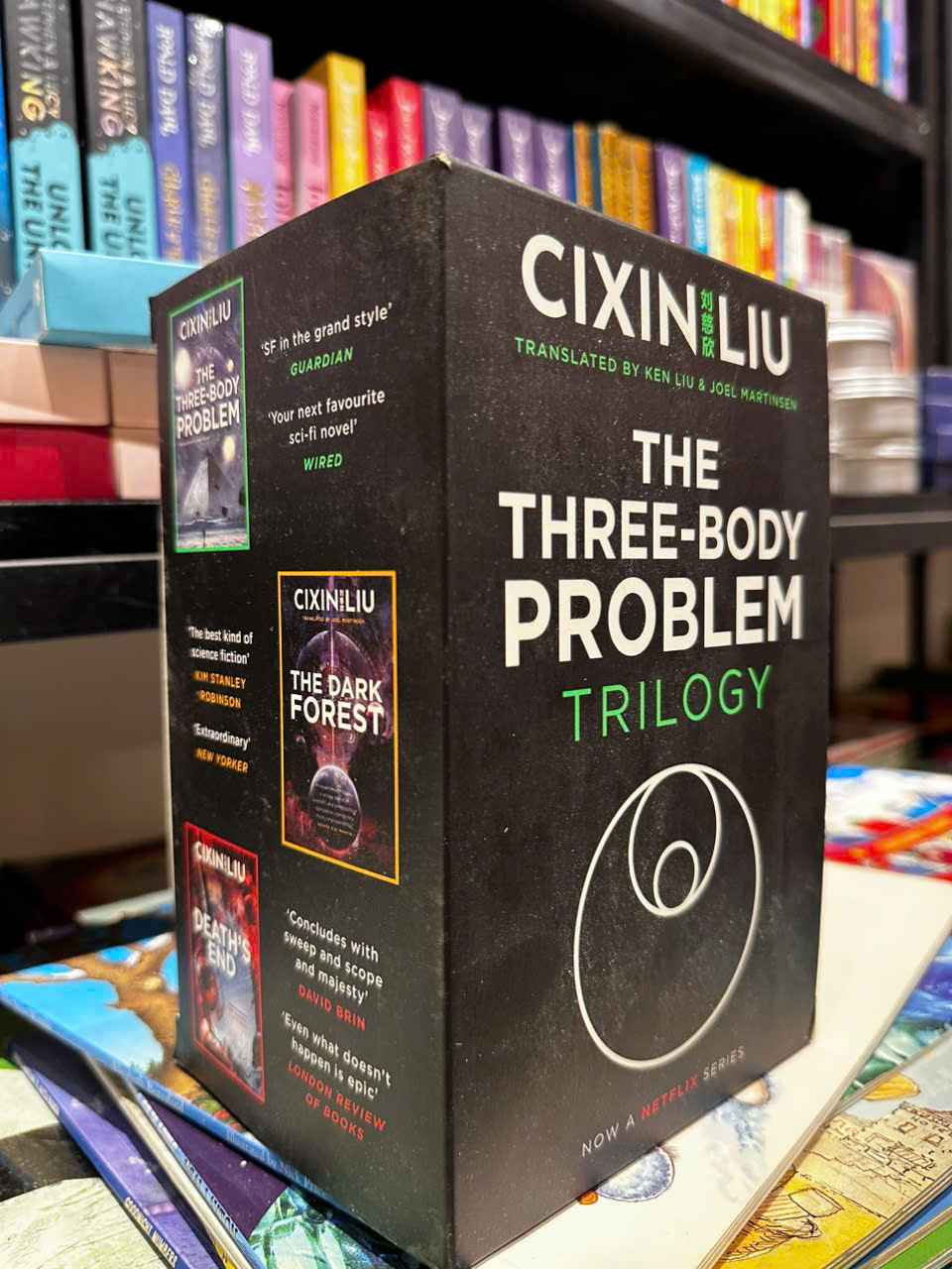Tác giả: Cixin Liu Nhà xuất bản: Head of Zeus Năm xuất bản: 2023 Công ty phát hành: 66Books Loại bìa: Bìa mềm Số trang: 1744 Trang Ngôn ngữ: Tiếng Anh ISBN: 9781035905874 Kích thước: 13.6 x 11.2 x 20.1 cm     SẼ TRỞ THÀNH MỘT SERIES NETFLIX LỚN   HIỆN TƯỢNG KHOA HỌC KHOA HỌC ĐƯỢC GIẢI THƯỞNG, ĐƯỢC TUYỆT VỜI, BÁN TRIỆU BẢN SAO   Hãy tưởng tượng một vũ trụ được tuần tra bởi vô số kẻ săn mồi vô danh.   Hãy tưởng tượng điều gì có thể xảy ra với bất kỳ nền văn minh nào đủ khôn ngoan để phát đi thông tin về vị trí của nó.   Đây là BỘ BA VẤN ĐỀ CƠ THỂ của Cixin Liu.   Dệt nên một mạng lưới phức tạp gồm các mưu kế, thủ đoạn, triết học và vật lý xuyên suốt nhiều năm ánh sáng của không gian và 18,9 triệu năm thời gian, câu chuyện về cuộc đấu tranh của loài người để vươn tới các vì sao này là một kiệt tác có tầm nhìn xa trông rộng với quy mô và động lực chưa từng có. Hiện có sẵn trong một bộ đóng hộp, bao gồm:   1 VẤN ĐỀ BA THÂN 2RỪNG TỐI 3 KẾT THÚC CHẾT         SOON TO BE A MAJOR NETFLIX SERIES   THE AWARD-WINNING, CRITICALLY ACCLAIMED, MILLION-COPY-SELLING SCI-FI PHENOMENON   Imagine a universe patrolled by numberless and nameless predators.   Imagine what might happen to any civilisation unwise enough to broadcast its location.   This is Cixin Liu's THREE-BODY PROBLEM TRILOGY.   Weaving a complex web of stratagem, subterfuge, philosophy and physics across light years of space and 18.9 million years of time, this tale of humanity's struggle to reach the stars is a visionary masterwork of unprecedented scale and momentum. Available now in one boxed set, including:   1 THE THREE-BODY PROBLEM 2 THE DARK FOREST 3 DEATH'S END