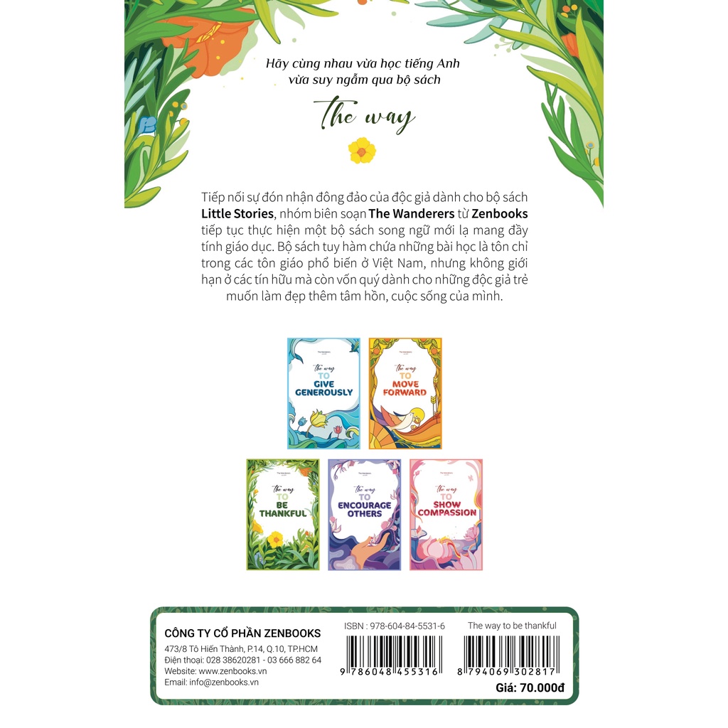 The Way series consists of stories about benevolence from Buddhism and the right teachings from Christianity, which has been collected according to the motto “Religion is inherently a path leading to a standard way of life, no religion teaches people to live the wrong way.” Therefore, in addition to helping readers enhance their English skills as well as vocabulary, Zenbooks wants to broaden your thinking about one or more religions that you may have some inherent biases through this book series. Let your mind be open and willing to comprehend things that you have never read before. The Wanderers believes that this series will guide you how to walk on your own “way”.