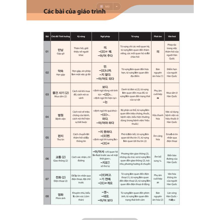 Sách bài tập sơ cấp 2 – bổ trợ cho Giáo trình tiếng Hàn tổng hợp được chia thành 3 phần chính sau đây: