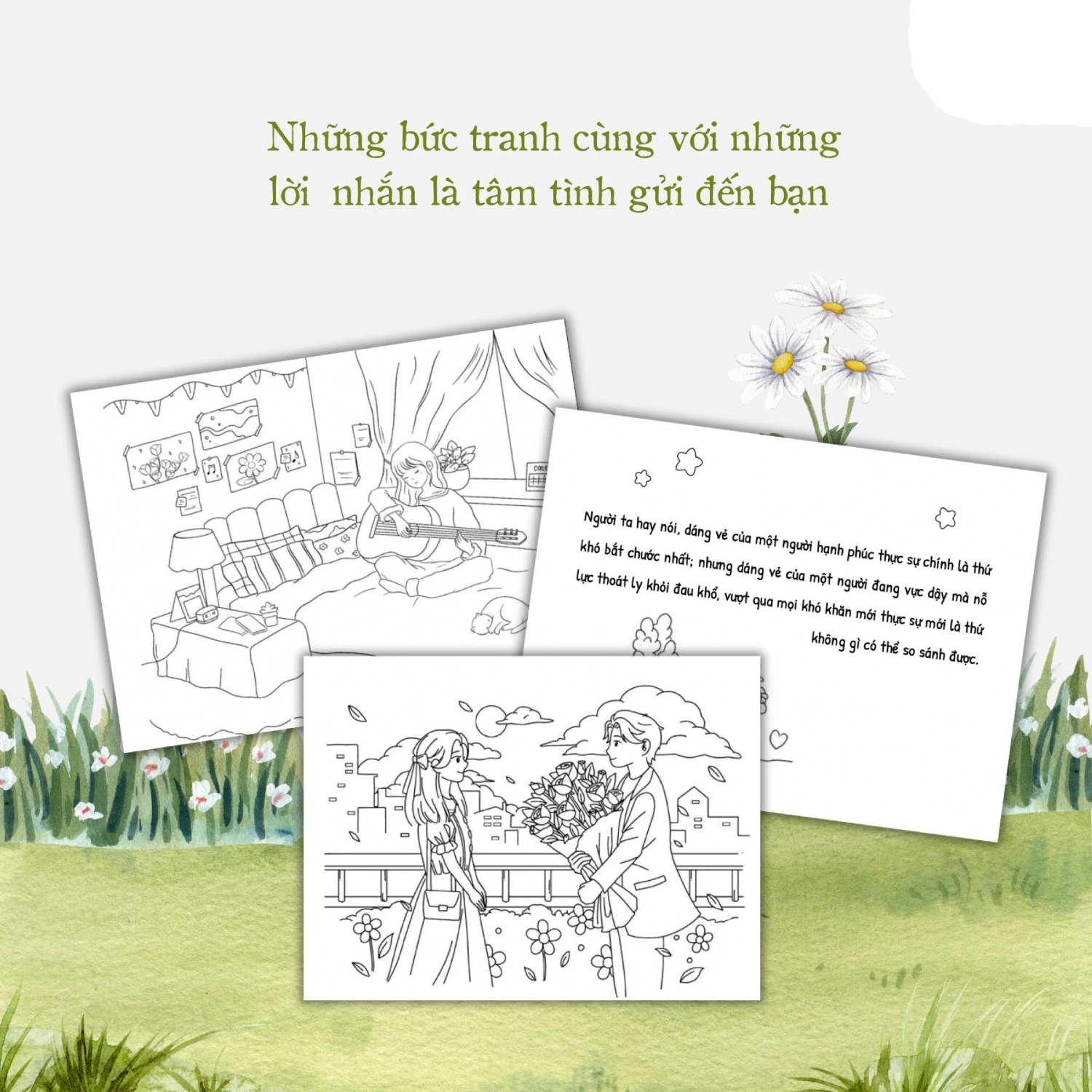 Sách tô màu này gồm 38 bức tranh với các chủ đề phong phú, từ nỗ lực, khí chất đến bình yên, hạnh phúc và tự do tận hưởng cuộc sống.