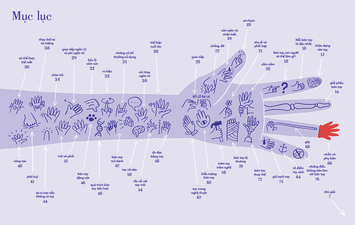 Tỏ tường tay ta – Bách khoa toàn thư về đôi tay tiếp cận muôn vẻ cuộc sống từ góc độ đôi tay. Cùng phiêu lưu tới hiện trường phá án, dõi theo quá trình tiến hoá hơn 60 triệu năm và chiêm ngưỡng vẻ đẹp của tay trong nghệ thuật. Chưa hết! Cuốn sách còn bật mí cách giao tiếp bằng tay hiệu quả, bí quyết đo cả thế giới với cây thước thiết thân, hay cách bảo vệ và giữ sạch bàn tay.