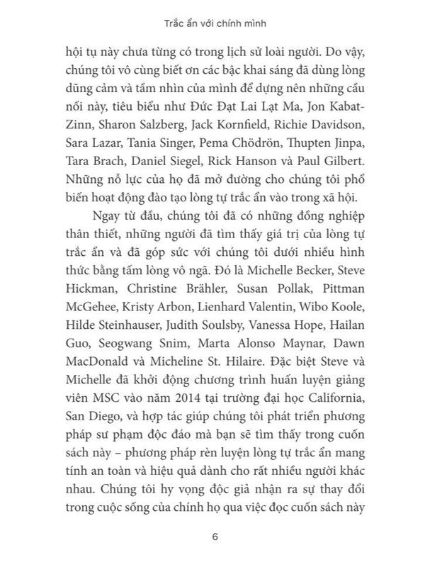 Trắc ẩn với chính mình là cuốn sách dựa trên cơ sở khoa học, bao gồm các bài thiền có hướng dẫn; tập quán thức có thể thực hiện mọi lúc, mọi nơi. Qua đó bạn sẽ biết cách thoát khỏi những phán xét gay gắt về bản thân và những tiêu chuẩn bất khả thi, nhằm giải quyết căng thẳng trong mối quan hệ cũng như các vấn đề thể chất lẫn tinh thần khác để nuôi dưỡng cảm giác hạnh phúc.