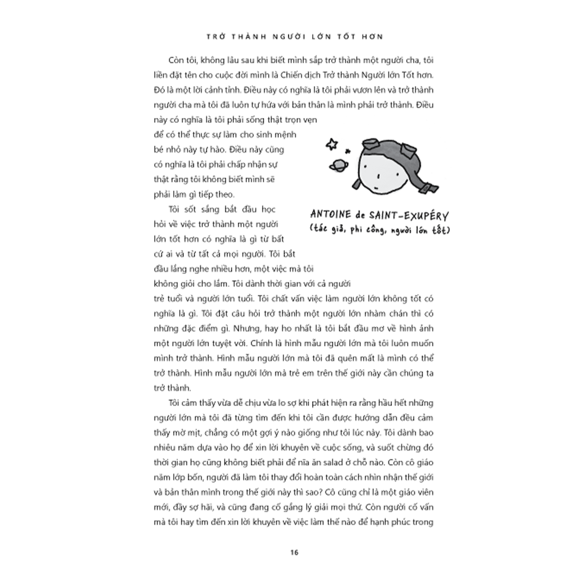 Cuốn sách “Trở thành người lớn tốt hơn” gồm ba phần với 15 chương, mỗi chương chính là một câu chuyện trong chuyến Hành trình Lắng nghe ấy.