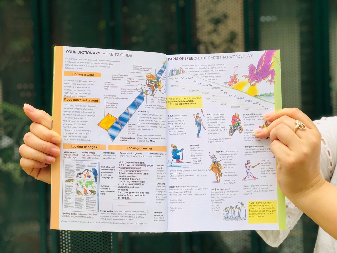 Mỗi chữ cái mở đầu đều được in đậm giúp trẻ dễ tìm kiếm. Ngay những trang đầu là hướng dẫn cụ thể để trẻ sử dụng từ điển hiệu quả kèm định nghĩa về các từ loại. Khi tra cứu, mỗi từ vựng gồm có phần định nghĩa, từ loại, và câu ví dụ in nghiêng cho thấy ngữ cảnh sử dụng. Một số từ còn kèm theo cách phát âm giọng Anh – Mỹ và nhiều sự thật thú vị về nguồn gốc của nó.
