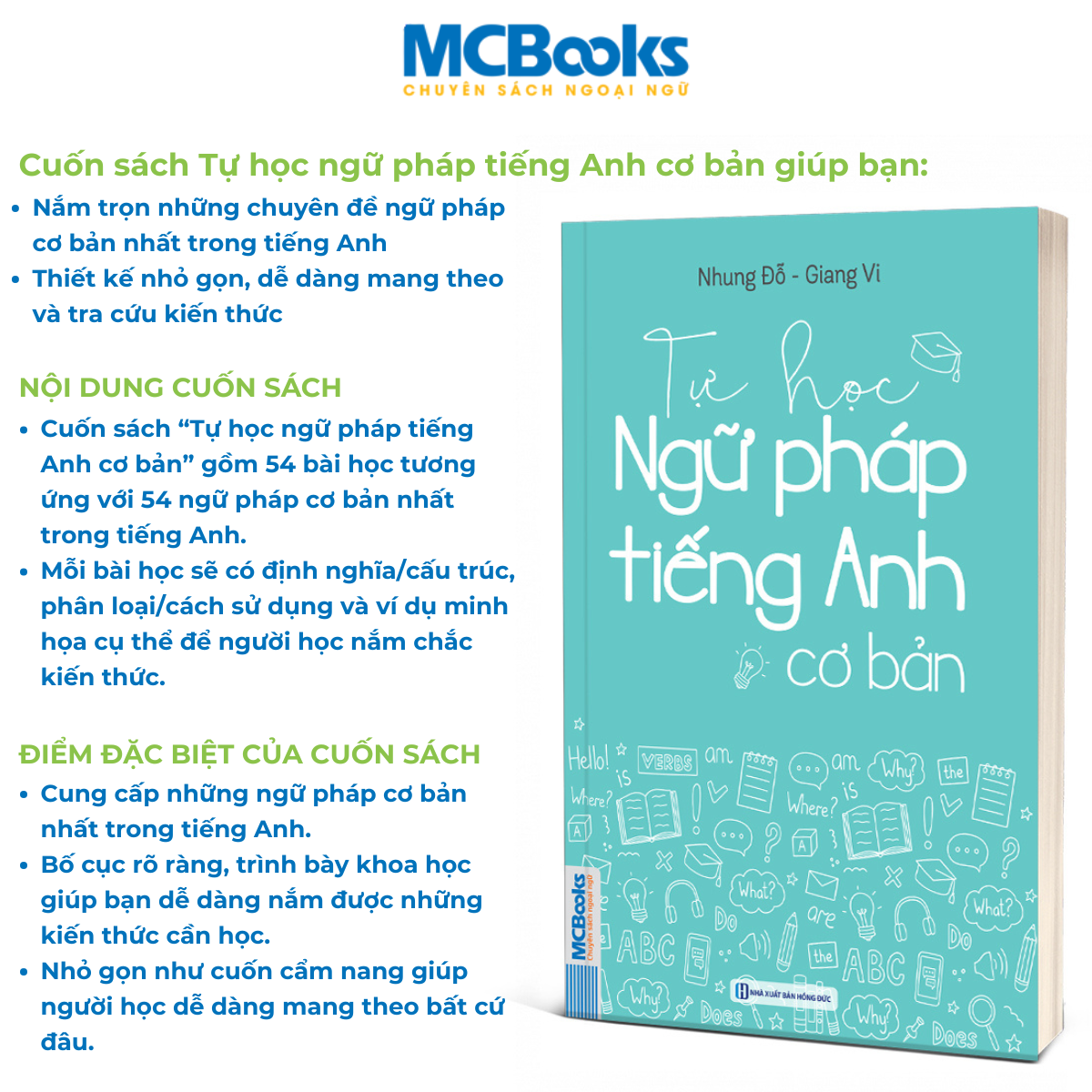 Sách - Tự Học Ngữ Pháp Tiếng Anh Cơ Bản - Khổ Nhỏ Cầm Tay Mcbooks Ngữ pháp tiếng Anh có vai trò rất lớn trong việc nâng cao khả năng ngoại ngữ tiếng Anh