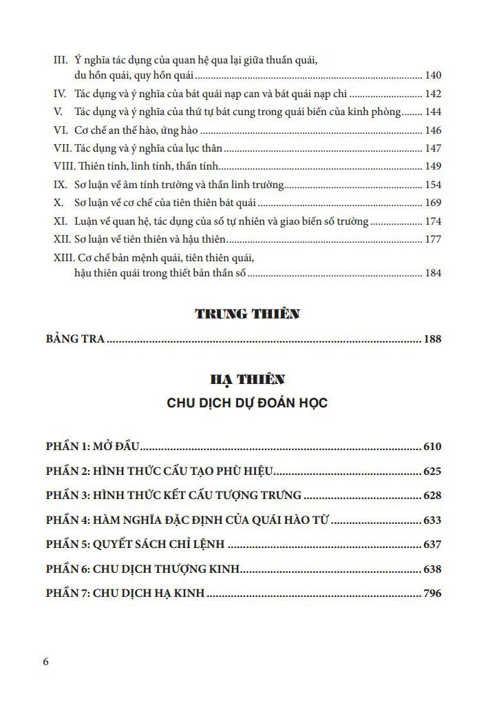 - Trung Thiên Phần tra cứu Phần 1: Mở đầu Phần 2: Hình thức cấu tạo phù hiệu Phần 3: Hình thức kết cấu tượng trưng Phần 4: Hàm nghĩa đặc định của quái hòa từ Phần 5: Quyết sách chỉ lệnh Phần 6: chu dịch thượng kinh Phần 7: chu dịch hạ kinh