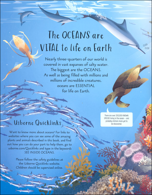SPLASH! Dive down deep and go on an incredible journey into our oceans. With over 80 flaps to lift, discover the mind-boggling array of animals and plants that live under the sea, and find out why - without the oceans - life on Earth wouldn't even exist. With Usborne Quicklinks to specially selected websites for videos and information on how you can help our oceans.