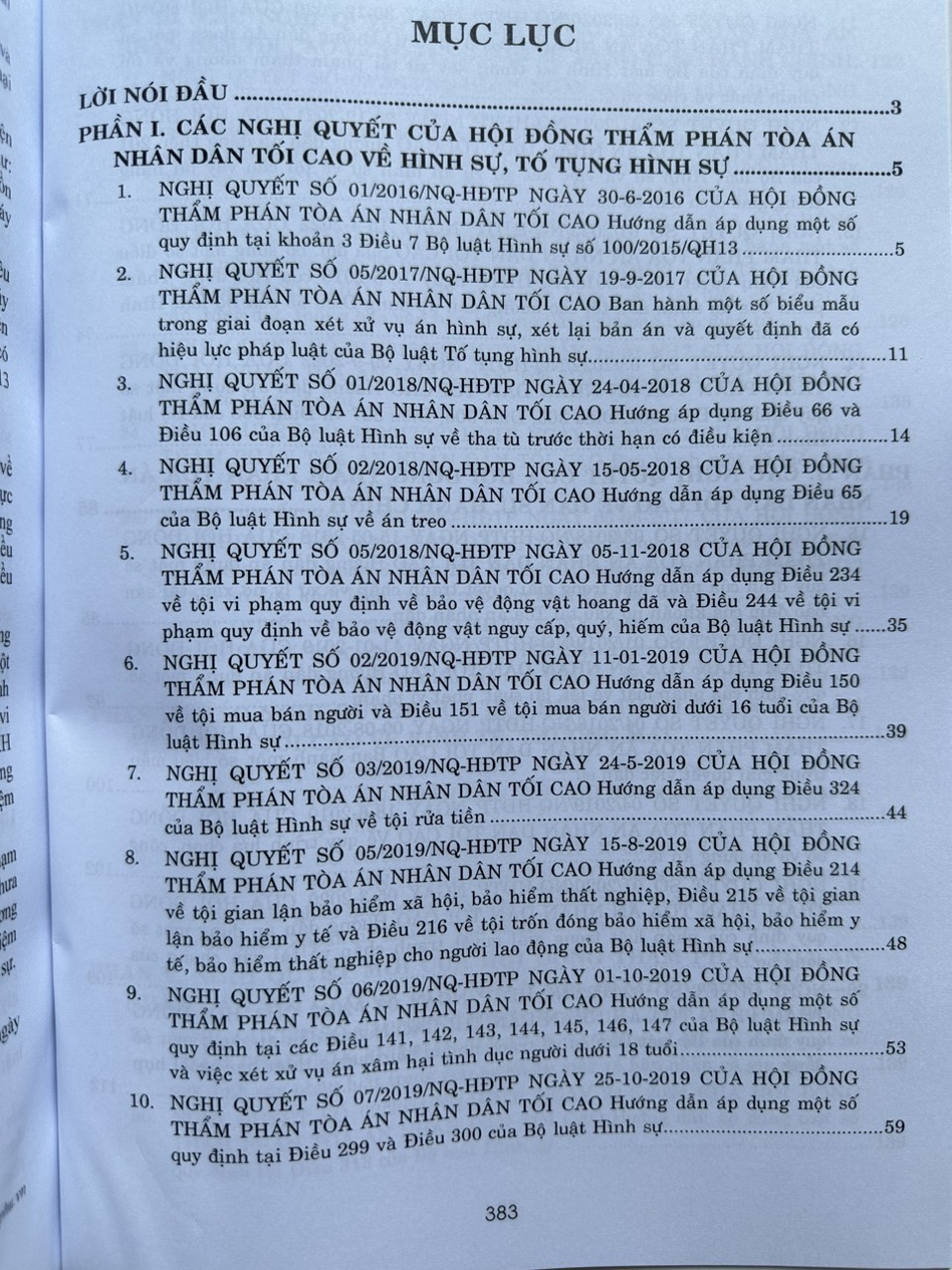 Phần thứ nhất. Các Nghị quyết của Hội đồng thẩm phán Tòa án nhân dân tối cao về hình sự, tố tụng hình sự