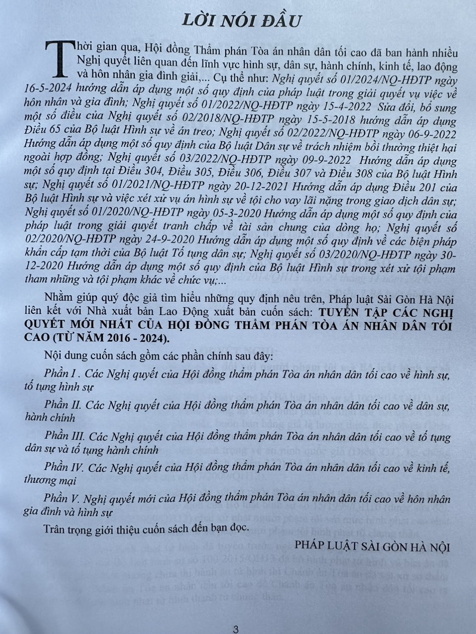 Nhằm phổ biến đến Quý Cơ quan, Đơn vị và Quý khách hàng thân thiết nắm bắt kịp thời những quy định mới nêu trên. Nhà sách Nam Việt xin trân trọng giới thiệu cuốn sách: Tuyển Tập Các Nghị Quyết Mới Nhất Của Hội Đồng Thẩm Phán Tòa Án Nhân Dân Tối Cao từ năm 2016 – 2024