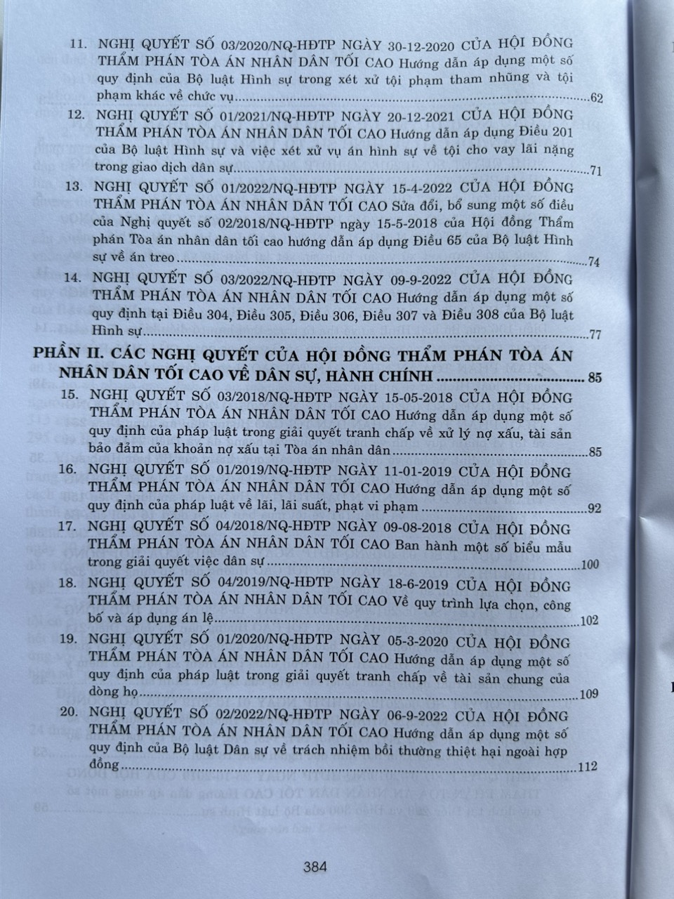 Phần thứ hai. Các Nghị quyết của Hội đồng thẩm phán Tòa án nhân dân tối cao về dân sự, hành chính