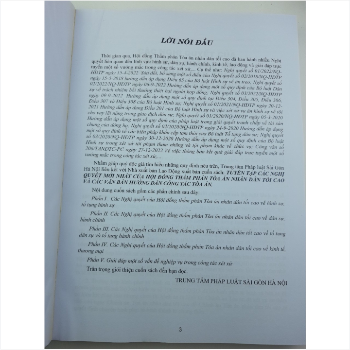 - Công văn số 206/TANDTC-PC ngày 27-12-2022 Về việc thông báo kết quả giải đáp trực tuyến một số vướng mắc trong công tác xét xử; Nhằm phổ biến đến Quý Cơ quan, Đơn vị và Quý khách hàng thân thiết nắm bắt kịp thời những quy định mới nêu trên. Nhà sách Nam Việt xin trân trọng giới thiệu cuốn sách: TUYỂN TẬP CÁC NGHỊ QUYẾT MỚI NHẤT CỦA HỘI ĐỒNG THẨM PHÁN TÒA ÁN NHÂN DÂN TỐI CAO VÀ CÁC VĂN BẢN HƯỚNG DẪN CÔNG TÁC TÒA ÁN Nội dung cuốn sách gồm các phần chính sau đây: Phần I . Các Nghị quyết của Hội đồng thẩm phán Tòa án nhân dân tối cao về hình sự, tố tụng hình sự Phần II. Các Nghị quyết của Hội đồng thẩm phán Tòa án nhân dân tối cao về dân sự, hành chính Phần III. Các Nghị quyết của Hội đồng thẩm phán Tòa án nhân dân tối cao về tố tụng dân sự và tố tụng hành chính Phần IV. Các Nghị quyết của Hội đồng thẩm phán Tòa án nhân dân tối cao về kinh tế, thương mại Phần V. Giải đáp một số vấn đề nghiệp vụ trong công tác xét xử Cảm ơn các bạn đã ghé thăm shop Nhà sách Nam Việt rất nhiều ạ!