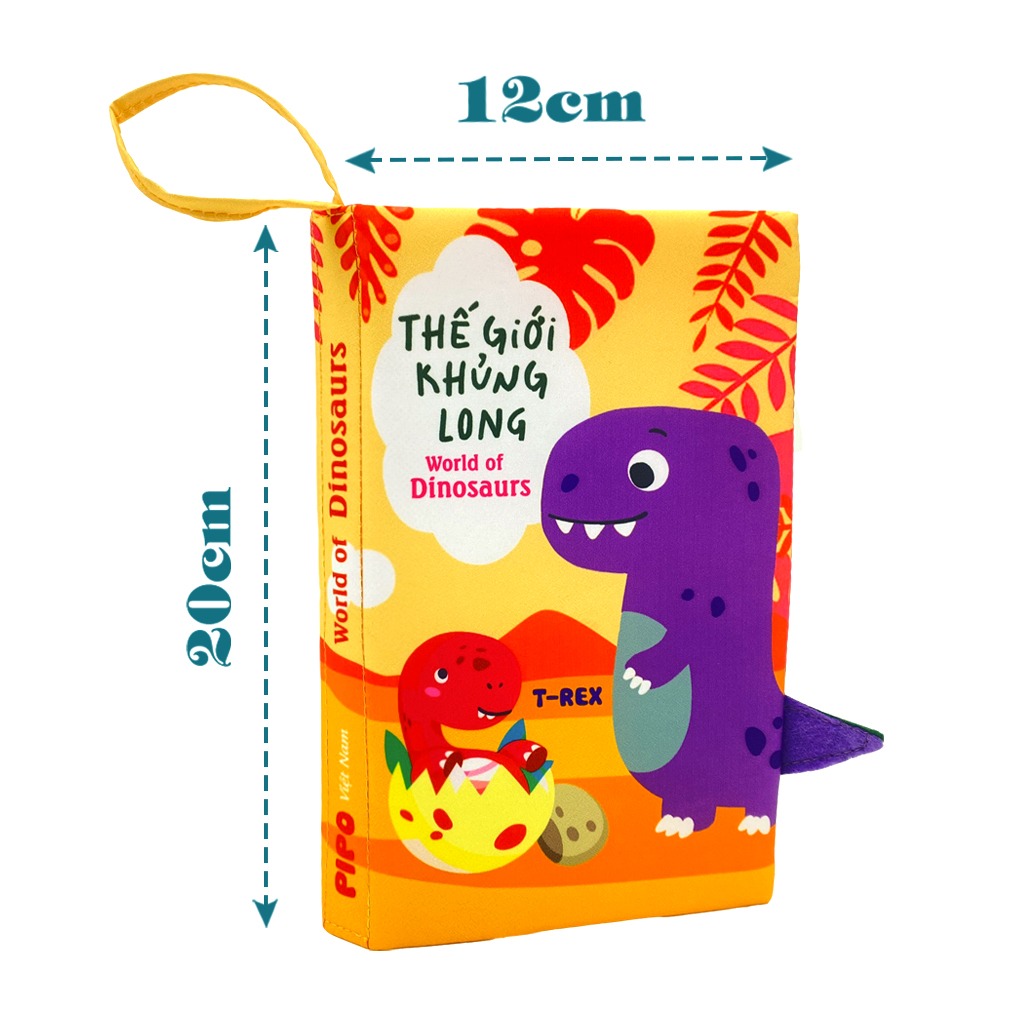 Sách vải tương tác đoán đuôi PiPo Việt nam an toàn cho bé chủ đề "Thế giới khủng long"