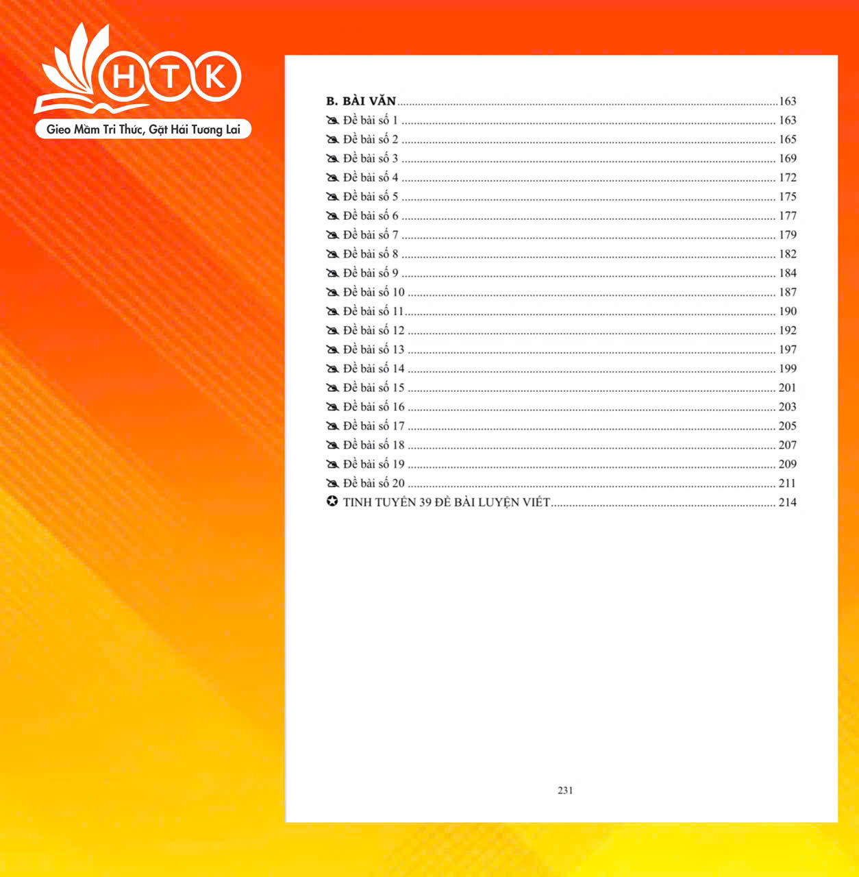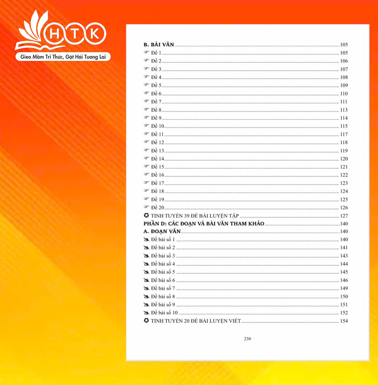 Điểm đáng chú ý của cuốn sách này là tuyển chọn 30 đề thi và đáp án tham khảo cùng nhiều đề bài luyện tập hay được sưu tầm và tuyển chọn. Để giúp bạn đọc có thêm nguồn tư liệu tham khảo thật phong phú, ngoài các đoạn và bài viết của học sinh đã được chỉnh sửa và hoàn thiện, chúng tôi xin phép được trích dẫn một số tác phẩm của nhà văn, nhà thơ; sử dụng đề thi và đáp án chính thức của Phòng Giáo dục và Đào tạo một số thị xã/huyện; Sở Giáo dục và Đào tạo một số tỉnh thành; của Bộ Giáo dục và Đào tạo trong thời gian gần đây.