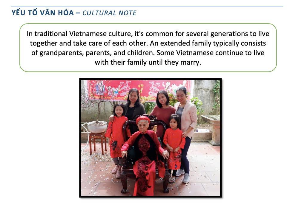 Using cultural factors, slang, games and Vietnamese song also make lessons more interesting. Learners can also discuss and compare cultural characteristics of Vietnam with other cultures.