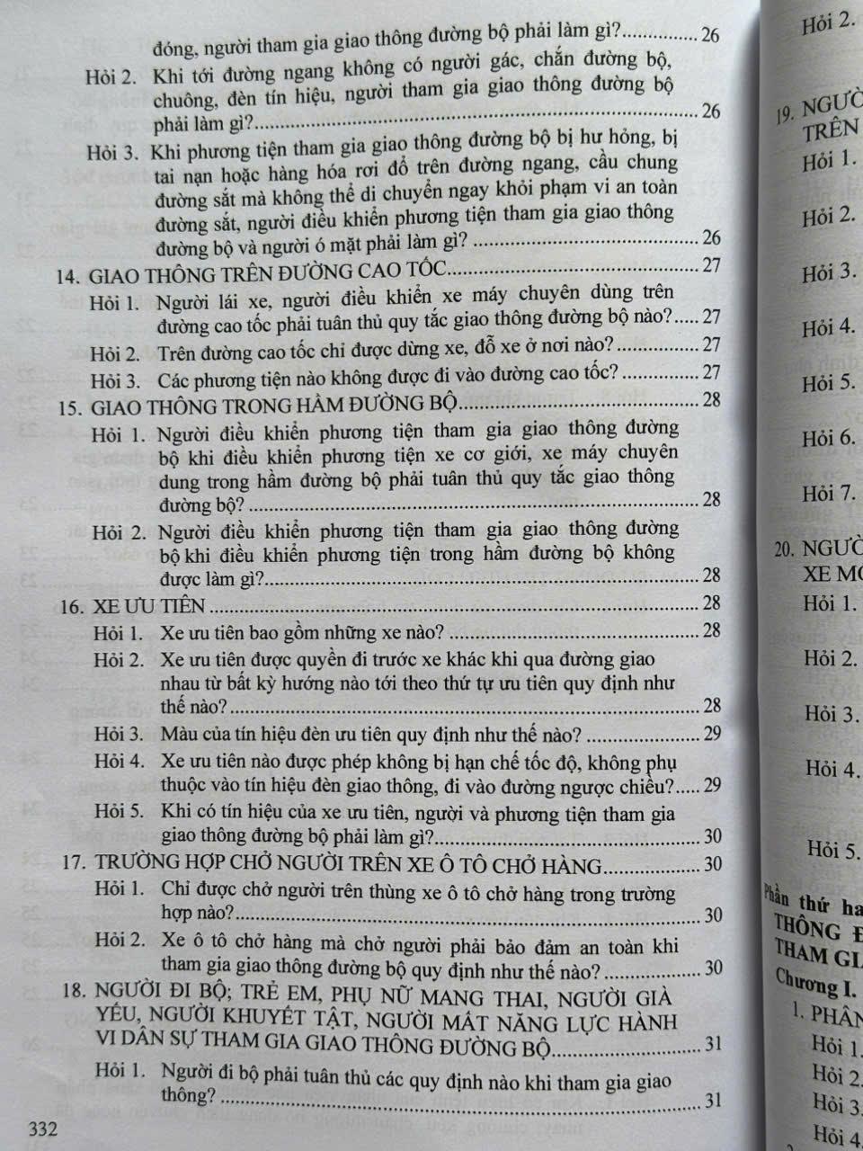 Phần thứ hai. HỎI ĐÁP VỀ PHƯƠNG TIỆN THAM GIA GIAO THÔNG ĐƯỜNG BỘ VÀ NGƯỜI ĐIỀU KHIẾN PHƯƠNG TIỆN THAM GIA GIAO THÔNG ĐƯỜNG BỘ