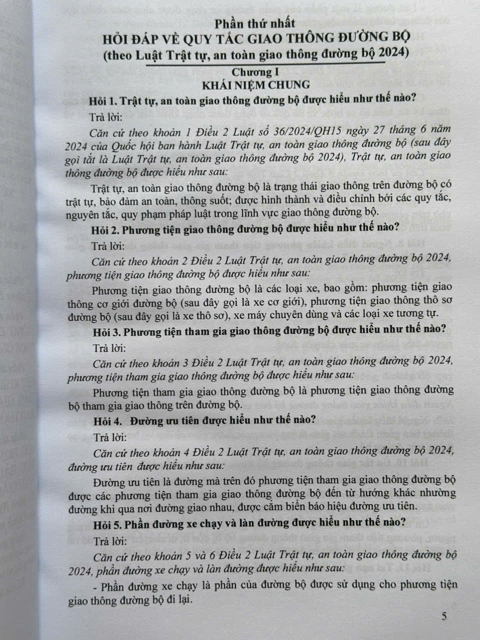 Phần thứ nhất. HỎI ĐÁP VỀ QUY TẮC GIAO THÔNG ĐƯỜNG BỘ (theo Luật Trật tự, an toàn giao thông đường bộ 2024)
