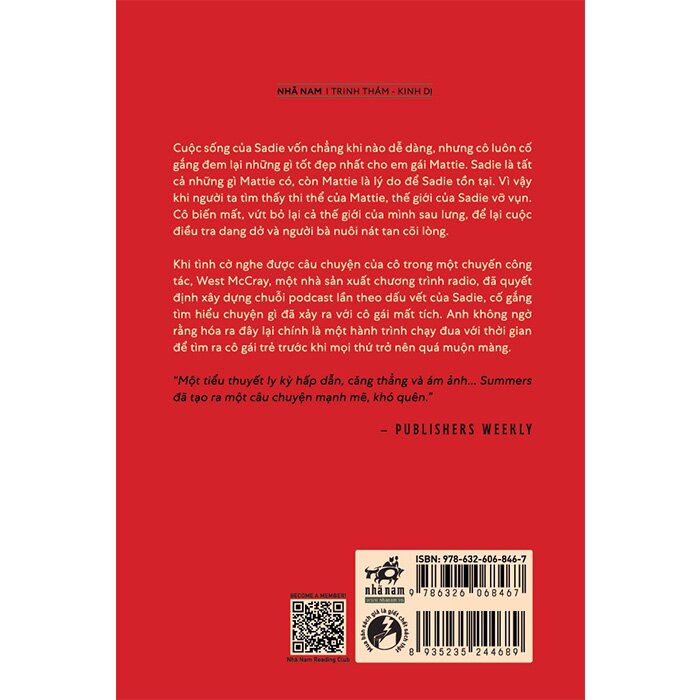 Cuộc sống của Sadie vốn chẳng khi nào dễ dàng, nhưng cô luôn cố gắng đem lại những gì tốt đẹp nhất cho em gái Mattie. Sadie là tất cả những gì Mattie có, còn Mattie là lý do để Sadie tồn tại. Vì vậy khi người ta tìm thấy thi thể của Mattie, thế giới của Sadie vỡ vụn. Cô biến mất, vứt bỏ lại cả thế giới của mình sau lưng, để lại cuộc điều tra dang dở và người bà nuôi nát tan cõi lòn.