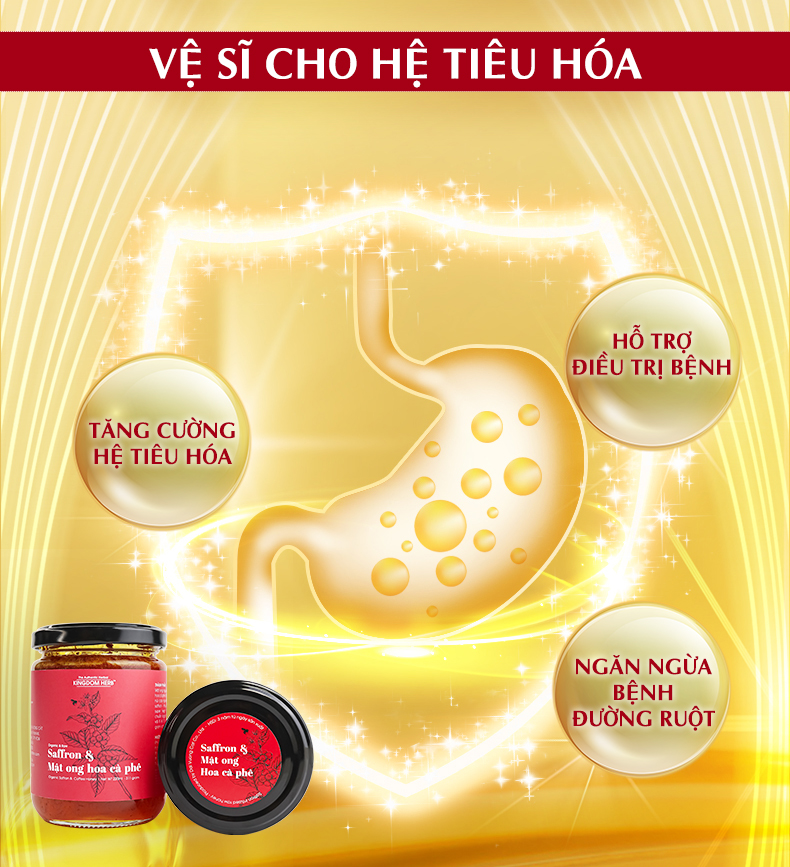 - Mật ong ngâm saffron sở hữu đặc tính chống oxi hóa mạnh từ 2 nguyên liệu chính, giúp da đàn hồi và ngăn ngừa lão hóa