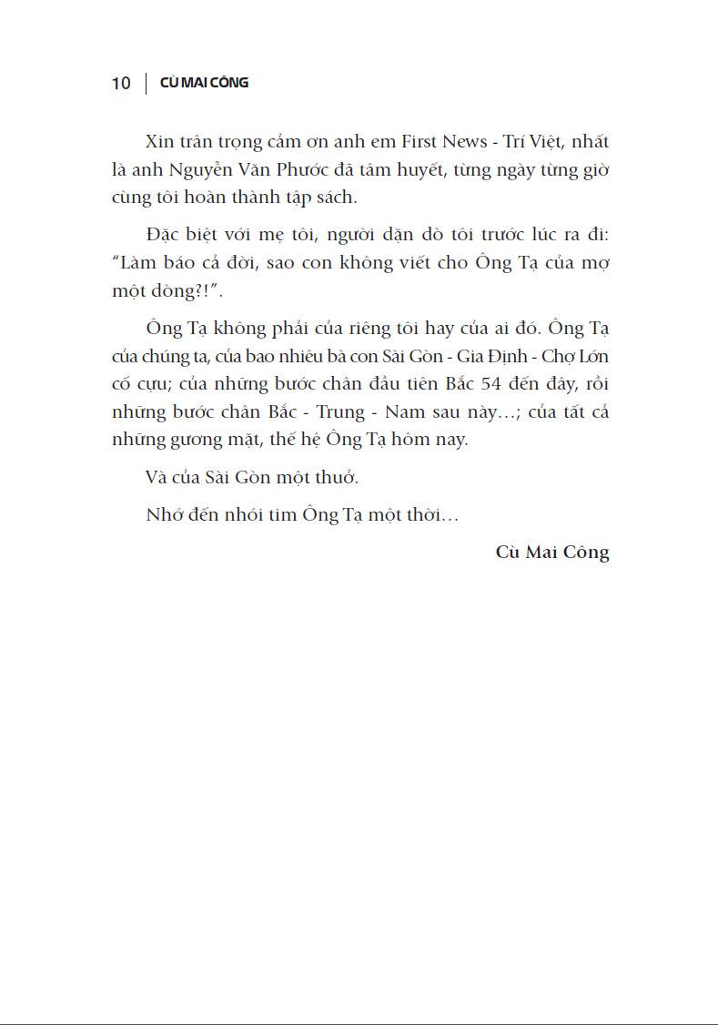 Không chỉ thấm đẫm hoài niệm, tình cảm và tâm huyết của tác giả Cù Mai Công, những ký ức về một khoảng trời tuổi thơ Ông Tạ được anh khắc họa trong tập sách Sài Gòn một thuở:“Dân Ông Tạ đó!”- Tập 2 còn góp phần làm phong phú thêm những câu chuyện về ký ức Sài Gòn xưa.