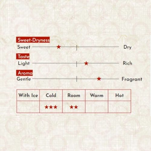 Xuất xứ: Nhật Bản Nồng độ cồn: 15% Thành phần: Lên men từ nước, gạo (nội địa Nhật), men gạo Koji (nội địa Nhật) Hướng dẫn sử dụng: Có thể uống tại nhiệt độ phòng 15 - 20 độ.
