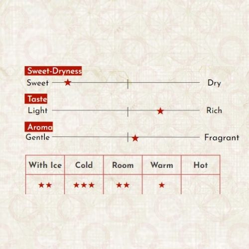 Mùi vị say đắm của loại sake này tựa như hoa hồng tỏa hương. Sắc hồng dịu nhẹ và lôi cuốn hệt như những cánh hoa anh đào là sự nắm bắt màu sắc tuyệt đối từ giống lúa tím cổ truyền làm nên rượu. Phảng phất chất thơm của hoa anh đào và mận, được điểm tô bởi những nốt hương của táo và quả mọng, rượu Sakura Emaki với chút vị ngọt được cân bằng bởi độ axit trên vòm miệng. Tạo nên hương vị lưu luyến khiến người ta nhớ mãi không quên!