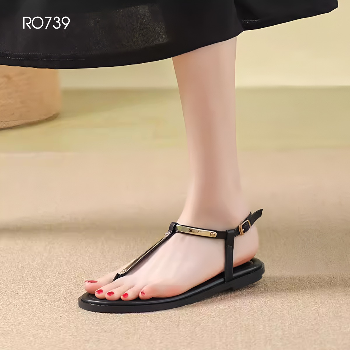 MÔ TẢ SẢN PHẨM: Sandal nữ quai xuôi, đế bệt ROSATA RO739 - 2p - Đen, Trắng - BKSTORE