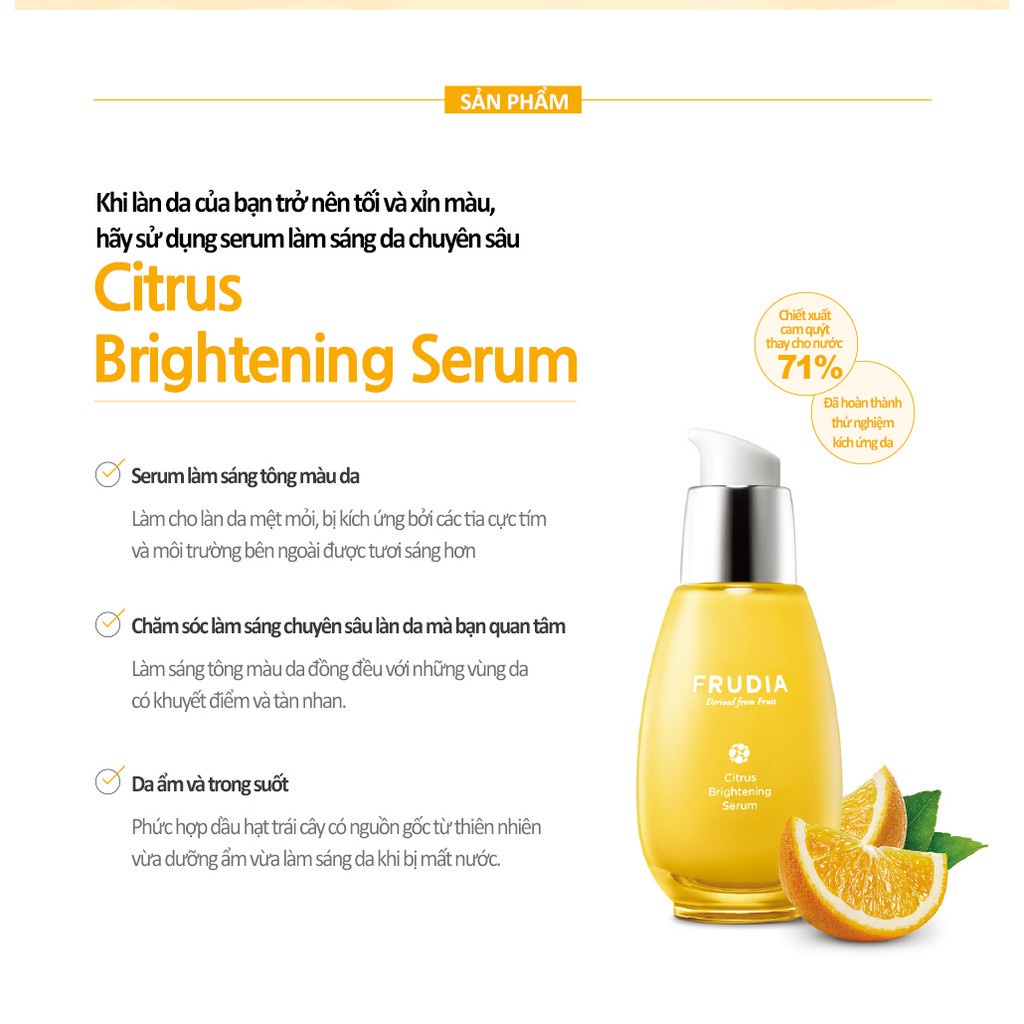 Thông tin sản phẩm: Serum Dưỡng Sáng Da Chiết Xuất Cam Quýt Frudia Citrus Brightening Serum 50g