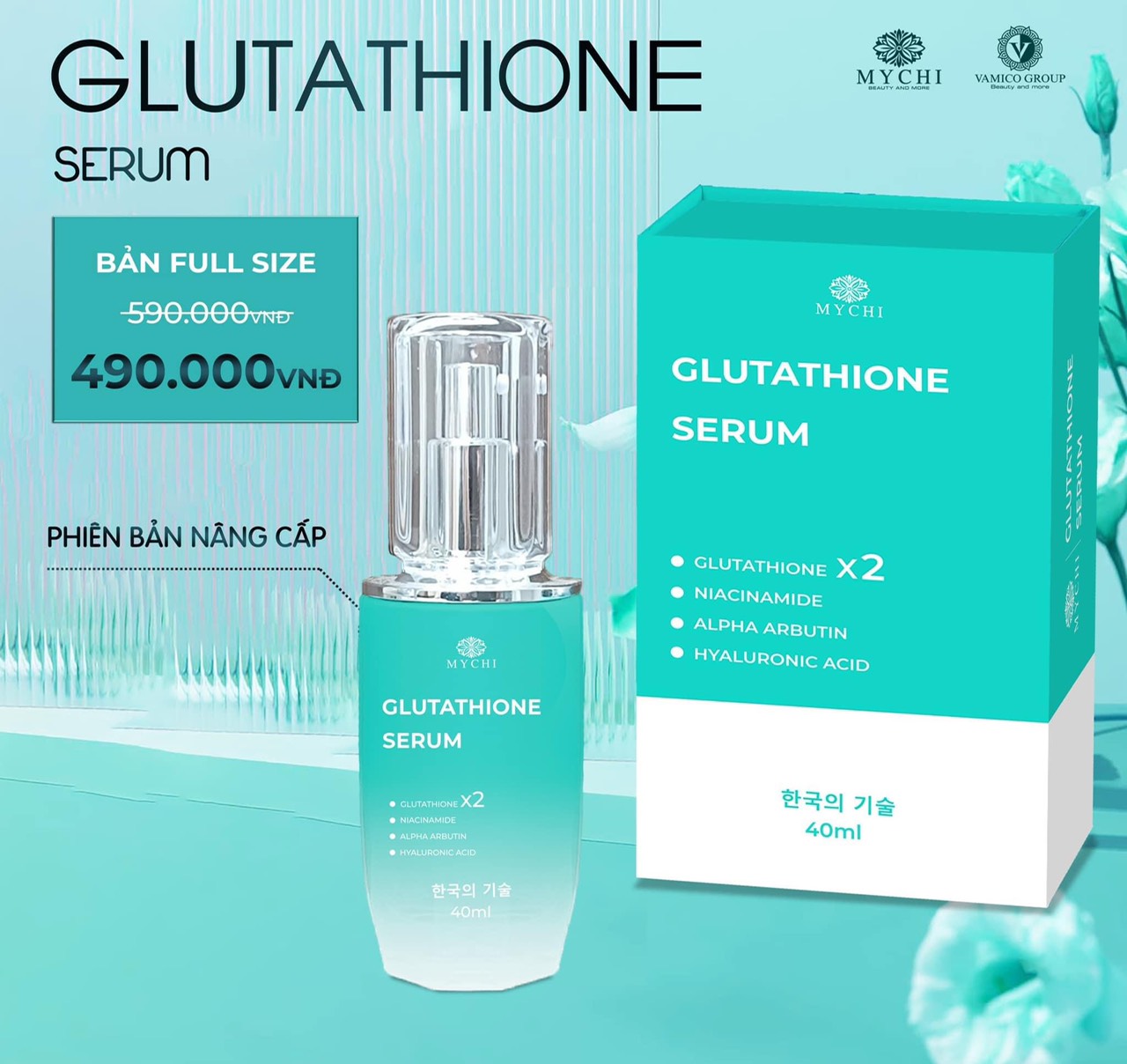 Serum Mychi - Serum cấy trắng lá vàng 24k glutathione 1.CÔNG DỤNG - Dưỡng da trắng sáng, mờ thâm sạm, giúp đồng đều sắc tố da - Chống oxy hóa da, cải thiện tình trạng