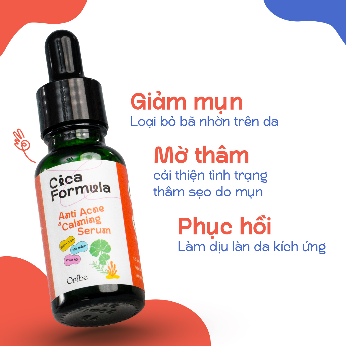 Serum rau má Oribe giảm mụn làm mờ thâm phục hồi da 20ml Serum rau má Oribe giảm mụn mờ thâm làm dịu da 10ml là một bước đột phá mới trong việc hỗ trợ giảm mụn, giảm nhờn và mờ thâm, sử dụng các thành phần 100% từ thiên nhiên lành tính và phù hợp với mọi loại da kể cả làn da nhạy cảm. Serum mụn Oriss không chứa Paraben hay Corticoid gây hại cho da. THÀNH PHẦN - Purified Water, Backhousia Citriodora Leaf Extract (chiết xuất Lá chanh lim thơm), 4 Terpineol (tinh chất Tràm Trà), Sodium Acrylates Copolymer, Lecithin, Xanthan Gum, Phenylpropanol, Ethylhexylglycerin, Glycerin - Tinh chất Tràm Trà (MELAFRESH TM T96): được nhập khẩu từ Úc, có đặc tính làm dịu đi các nốt mụn sưng tấy, mang lại hiệu quả cao trong việc làm giảm mụn. Đồng thời tinh dầu tràm trà còn làm giảm điều tiết tuyến bã nhờn, từ đó ngăn ngừa mụn quay trở lại. Ngoài ra, Tinh chất tràm trà còn thúc đẩy và tái tạo làn da sau tổn thương do mụn, làm mờ các vết thâm do mụn để lại. CÔNG DỤNG - Giúp ngăn ngừa và giảm mụn (mụn đầu đen, mụn đầu trắng, mụn bọc, mụn ẩn, mụn cám,…) - Kiểm soát dầu nhờn - Làm thông thoáng lỗ chân lông - Làm mờ các vết thâm, sẹo do mụn - Thúc đẩy nhanh quá trình phục hồi da bị tổn thương sau mụn - Góp phần ngăn ngừa sự phát triển của tác nhân gây mụn trên da CÁCH DÙNG - Bước 1: Làm sạch vùng da bị mụn bằng sửa rữa mặt chuyên dụng, lấy serum chấm lên các vị trí bị mụn - Bước 2: Thoa nhẹ cho serum thấm đều - Sử dụng 2 3 lần/ ngày MÔ TẢ SẢN PHẨM - Hộp 20ml
