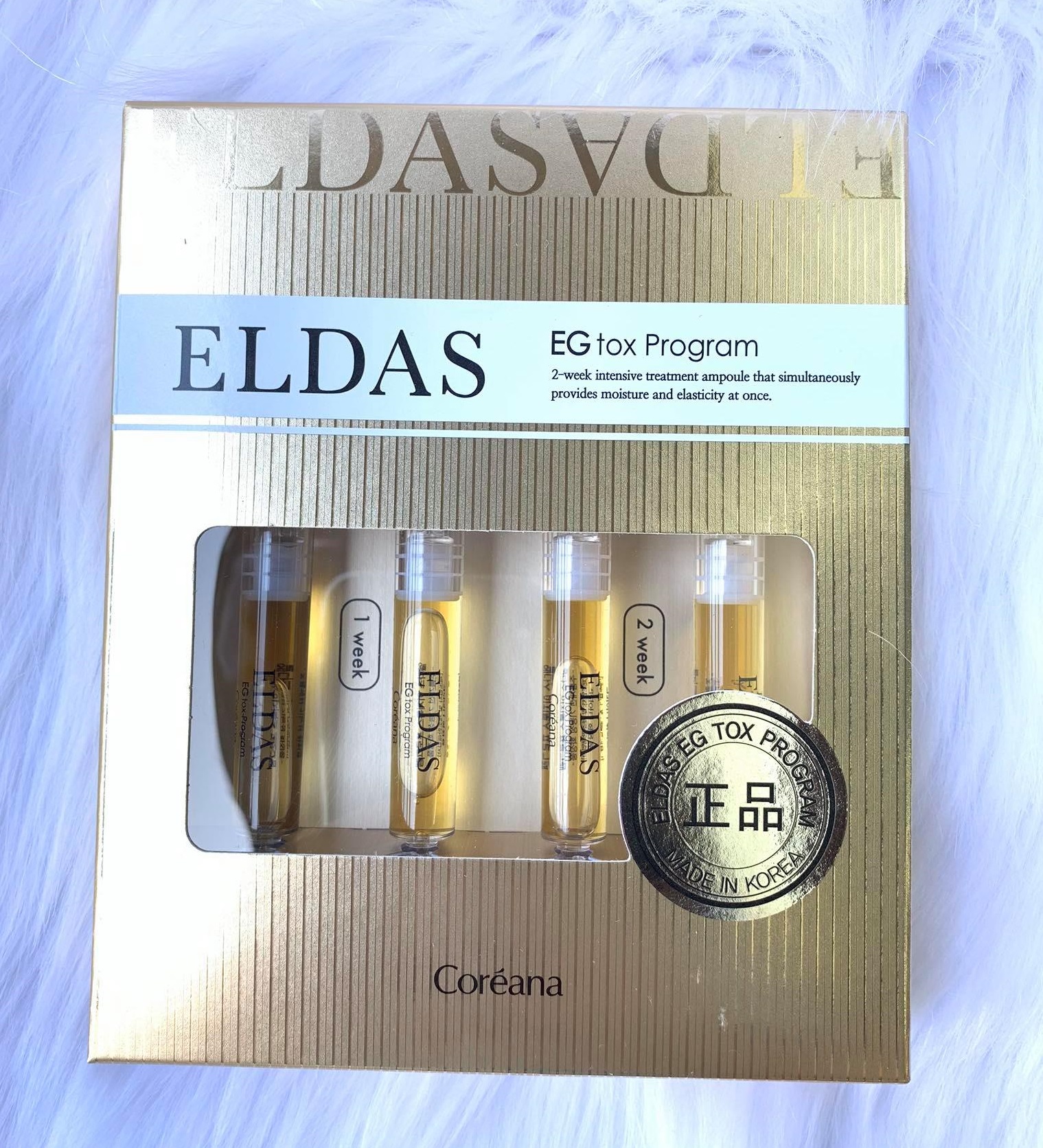 - Tế bào gốc Eldas EG Tox Program Coreana 4 ống nuôi dưỡng da căng mịn, trẻ trung, làm chậm quá trình lão hóa da.