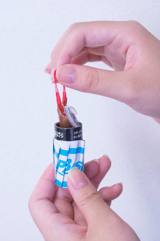 - Đặt dây vào ngón tay của bạn và từ từ kéo nó ra trong khi quay hình phễu trụ.