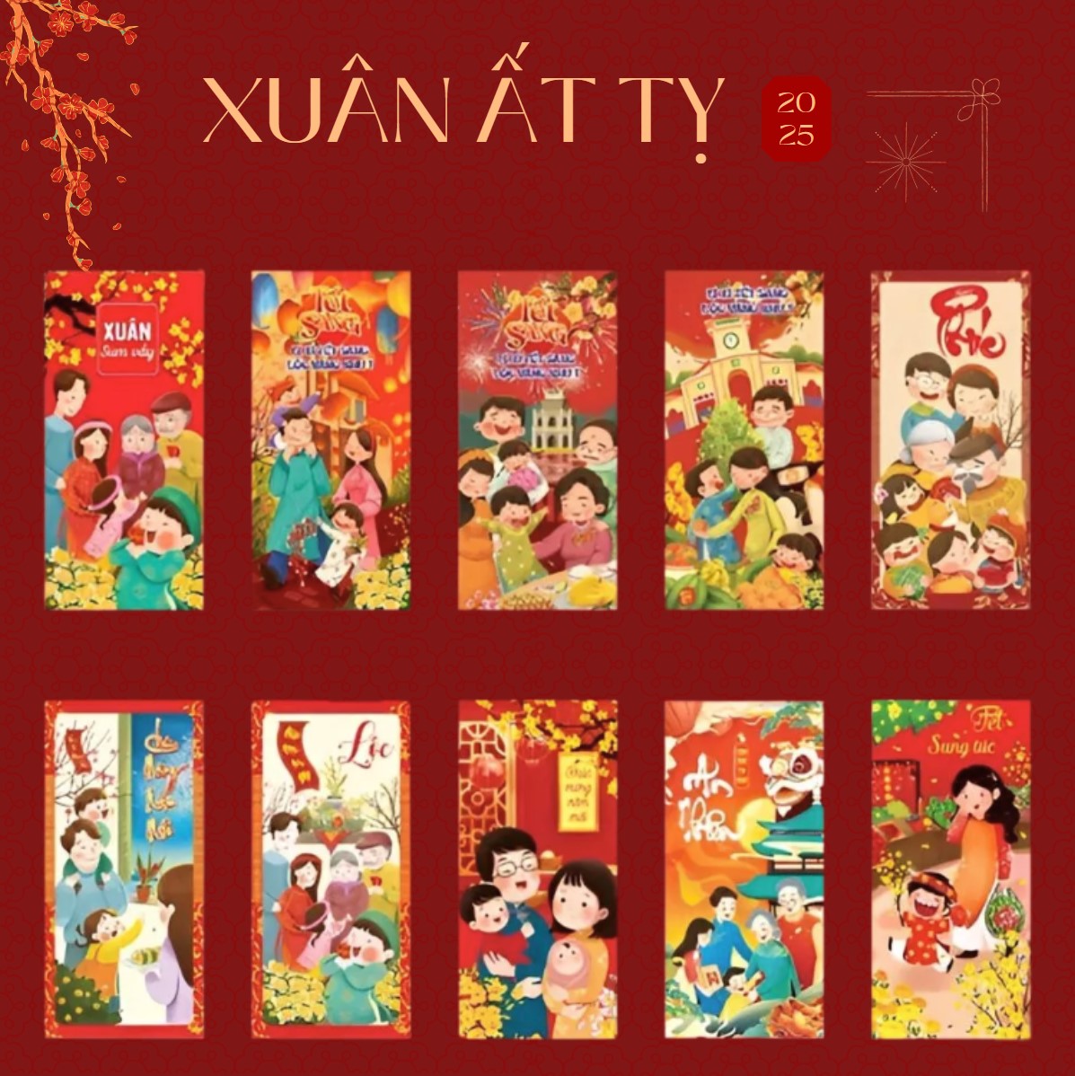 Bộ 5 Bao Lì Xì Tết Ất Tỵ 2025 - Tết Phú Quý - futurebook L185 - Bao lì xì được in bằng công nghệ in offset với chất lượng hình ảnh hoa văn sắc