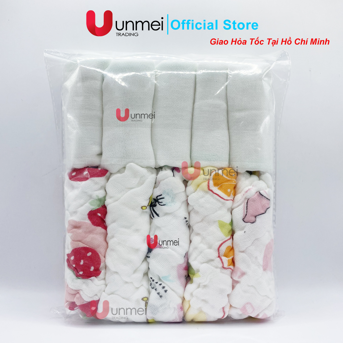 ✨Set 10 Khăn Xô, Khăn Sữa UNMEI Dày 6 Lớp 100% Cotton An Toàn, Thấm Hút Tốt, Tiện Lợi Cho Trẻ Từ Sơ Sinh (5 Khăn Xô Trắng KT25x25cm, 5 Khăn Xô Nhăn Hình 30x30cm)