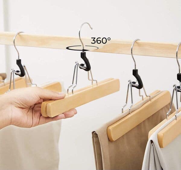 Mua tại TiktokSET 12 mắc treo quần áo Songmics Trouser Hangers Có đệm lót nỉ mềm mại, giúp tăng độ ma sát giữa móc treo và quần áo SIÊU KHÔNG TRƯỢT, tránh được các vết nhăn và biến dạng Tốt cho sức khỏe và – Sơn được sử dụng là sơn gốc nước, không còn lo lắng về formaldehyde và mùi khó chịu. Tay nghề tốt – làm bằng gỗ schima tự nhiên, được chà nhám bằng tay cẩn thận, sơn đều màu Thiết kế hợp lý – nhờ bộ căng, dễ dàng đóng mở, quần / váy nằm chắc chắn trong móc áo