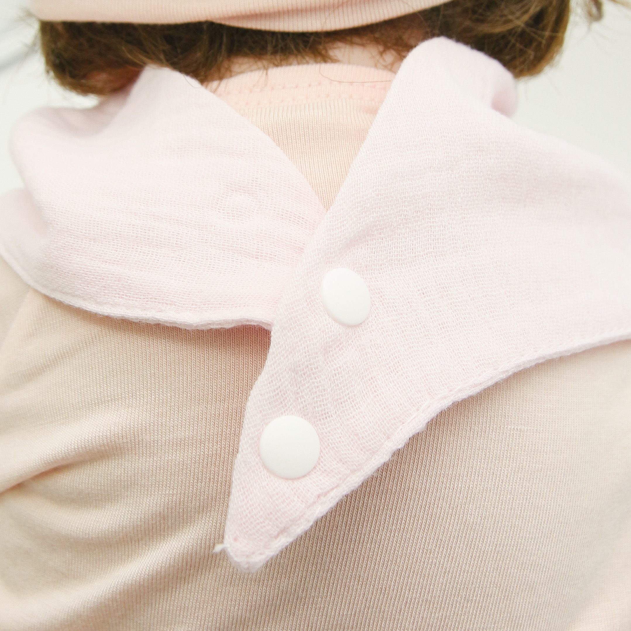 • Có 2 cúc bấm cố định hai đầu khăn, có thể thay đổi nấc phù hợp với từng bé.