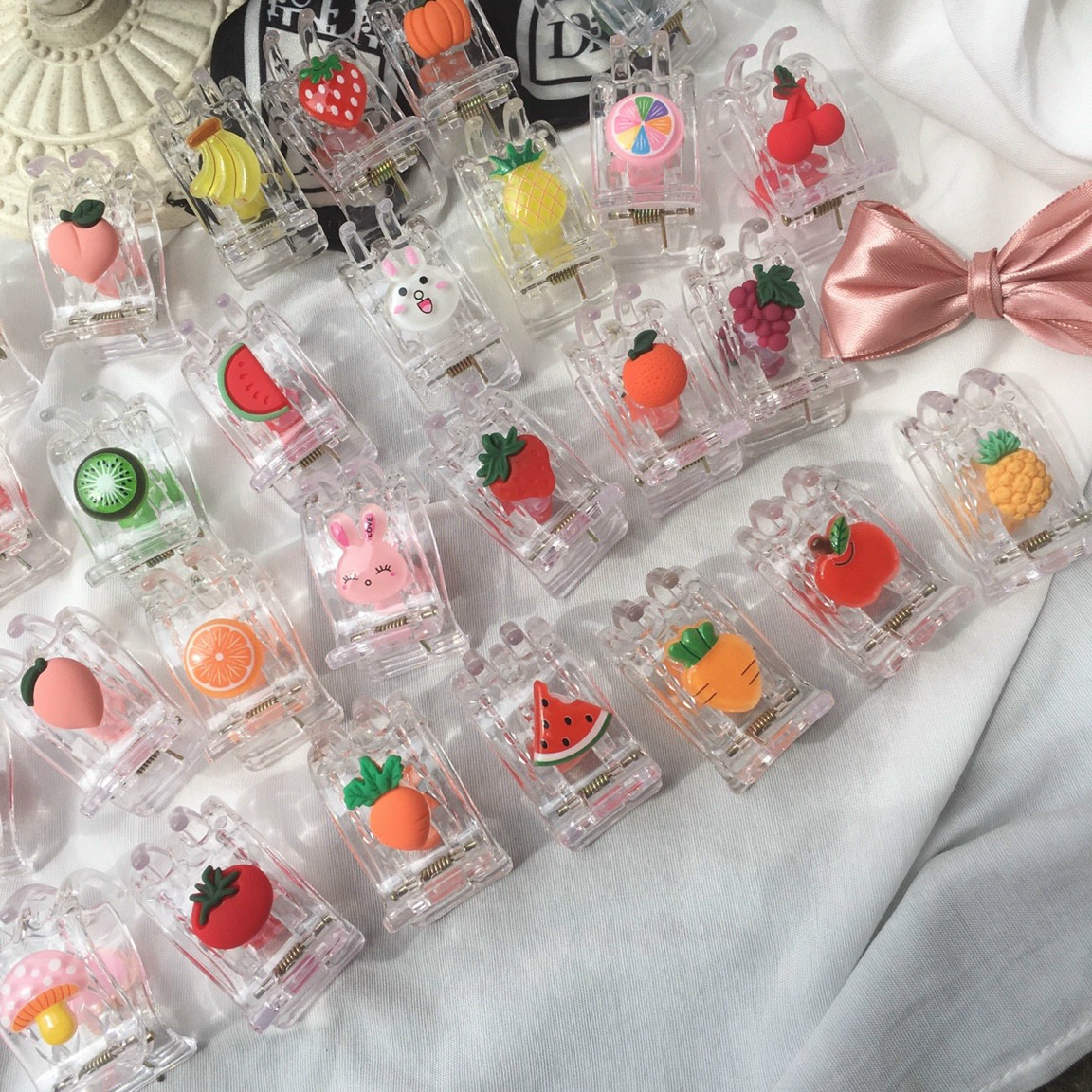 ✨sét 5 Kẹp Càng Cua ( Gấp Tóc ) 5 Răng Trong Suốt Loang Màu Đính Hình Trái Cây Dễ Thương ( Ngẫu Nhiên ) - Hàng Loại 1 Cao Cấp