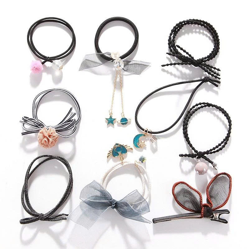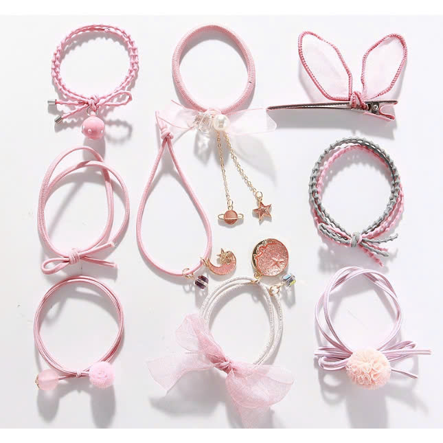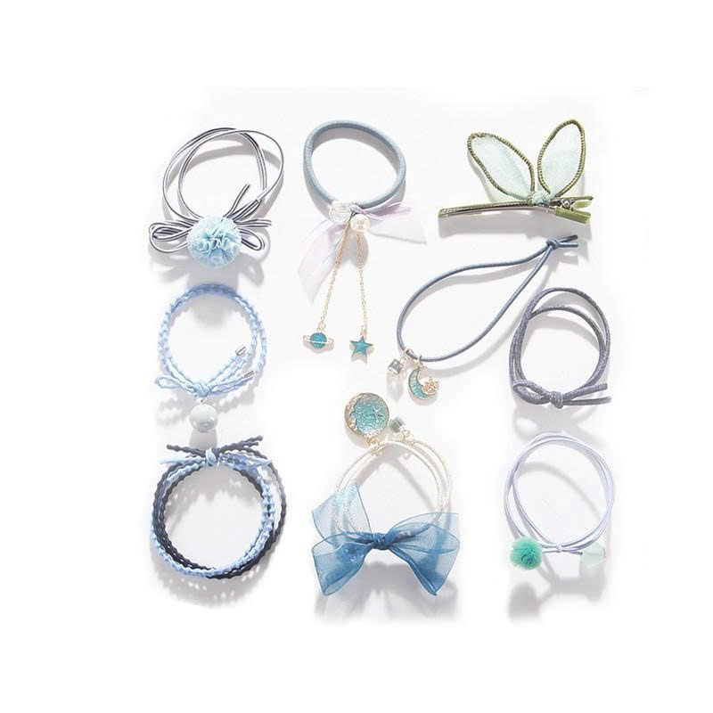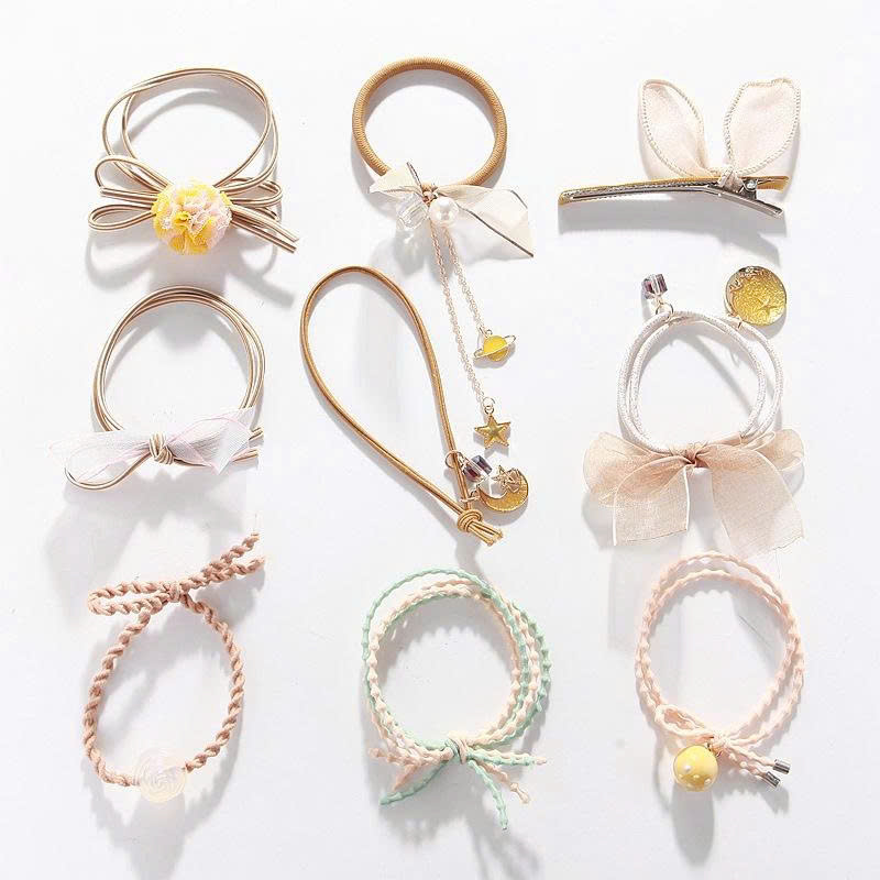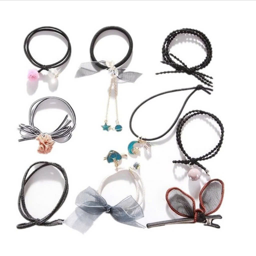 ✨Sét 9 dây buộc tóc và kẹp xinh xắn, có kèm túi lưới phong cách Hàn Quốc, giao màu ngẫu nhiên